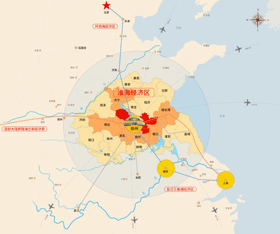自2017年国务院批复《徐州市城市总体规划》后,徐州便正式进入国家视野,成为淮海经济区中心城市,推进徐州中心城市辐射带动能力的作用。