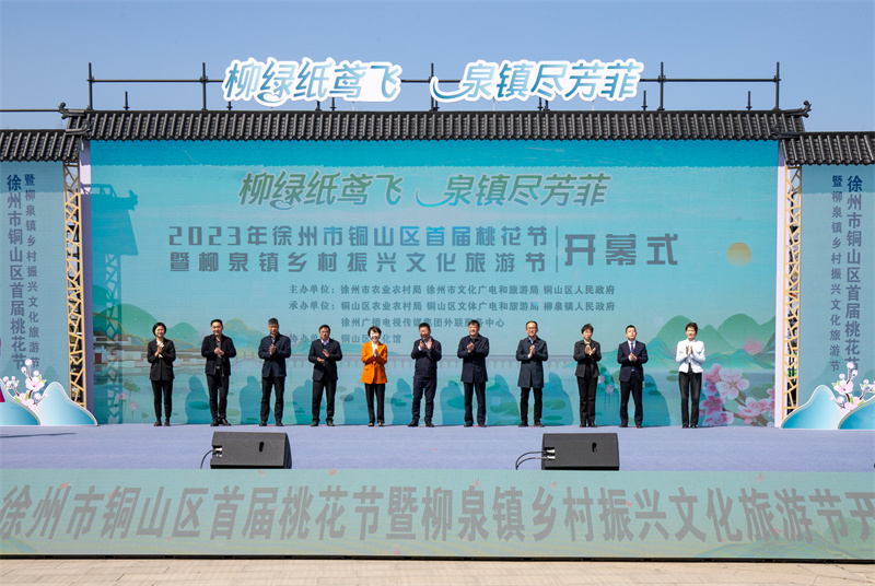 现代快报讯(通讯员 赵青 记者 张晓培)春风吹开千重锦,山花烂漫竞芳菲。4月2日,第十四届江苏省乡村旅游节市县联动特色文旅节庆活动——2023年徐州市铜山区首届桃花节暨柳泉镇乡村振兴文化旅游节在全国乡村旅游重点村北村村举行。
