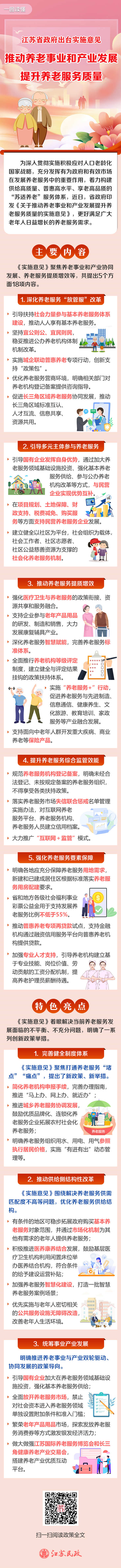 在特色亮点上,《若干措施》聚焦基本养老服务的定义、对象、内容、供给方式等,搭建具有江苏特色的基本养老服务制度体系框架。