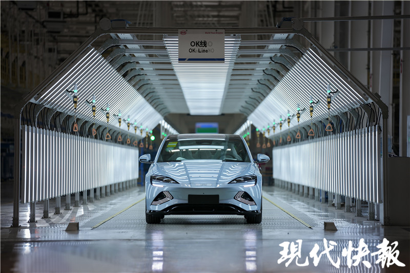 △比亚迪常州基地总装车间正在进行整车静态检验