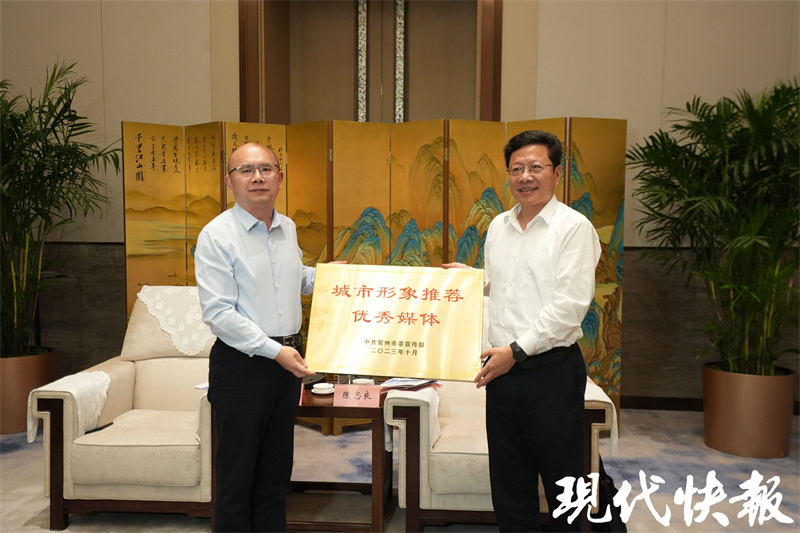 10月19日,常州市委宣传部、现代快报社联合开展的“常州高质量发展大调研”暨2023年全国主流媒体看常州采访调研活动正式启动。当天,常州市委常委、宣传部部长陈志良会见了全国 20 多家主流媒体负责人。陈志良表示,全国主流媒体看常州活动今年已经是第六年,衷心感谢现代快报社和各位媒体领导、记者朋友对常州发展的关心指导和大力支持。会见活动中,陈志良向现代快报社颁发了 " 常州城市推荐优秀媒体 " 奖牌。