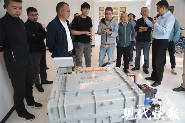 孙继胜对采访调研团提出的氢能自行车骑行时间、充气难度、租车成本、安全、应用场景等问题作了一一解答。他解释说,“氢能自行车上的固态氢电池采用低压固态储氢技术,不仅安全、储氢量大,而且内部平衡压力低。目前,该固态氢电池已通过火烧、高空抛落、撞击等实验,安全性强。”
