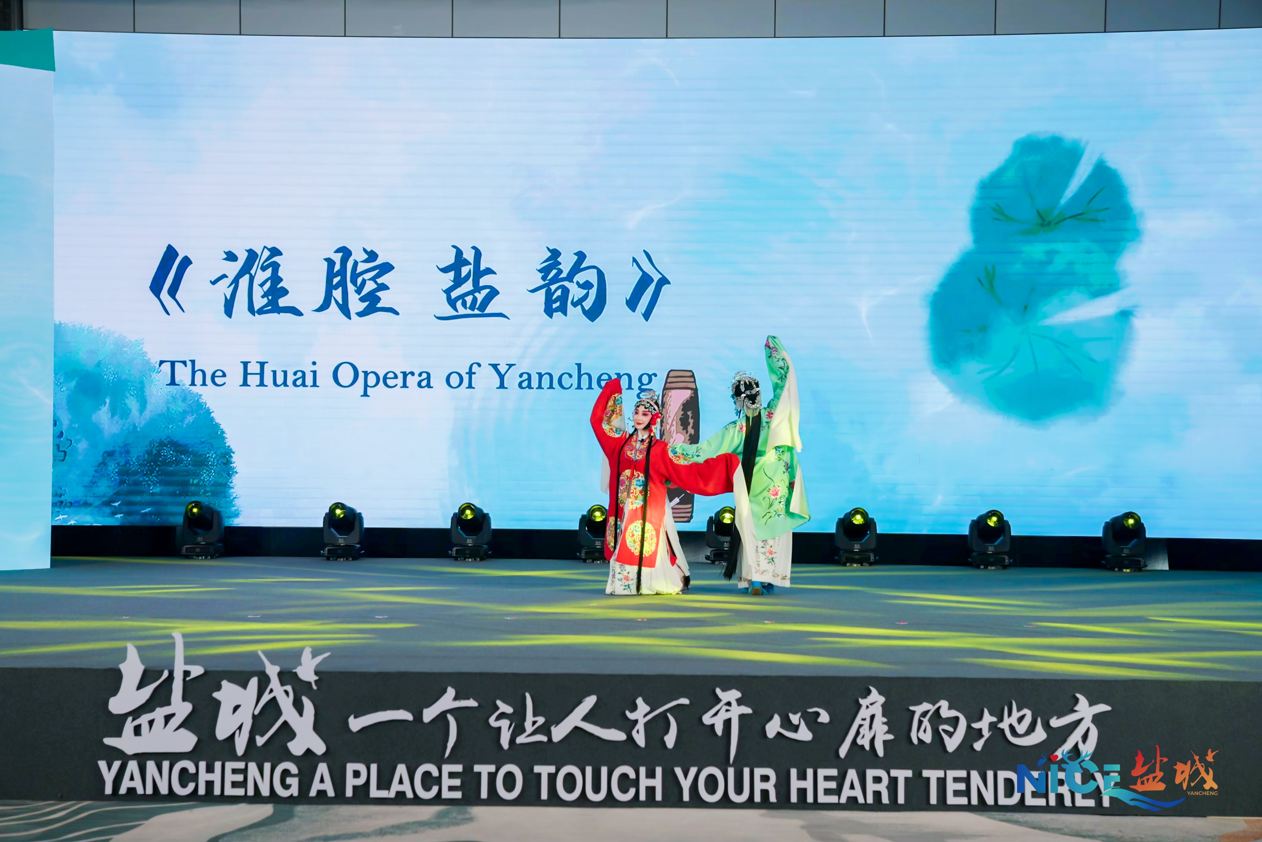 盐城历史悠久、人文荟萃,拥有国家级非遗5项、省级非遗70项。淮腔盐韵,非遗添香,现场非遗主题SHOW精彩展示了盐城淮剧、杂技、瓷刻、发绣、董永传说等非遗代表性项目,彰显盐城深厚的人文底蕴。