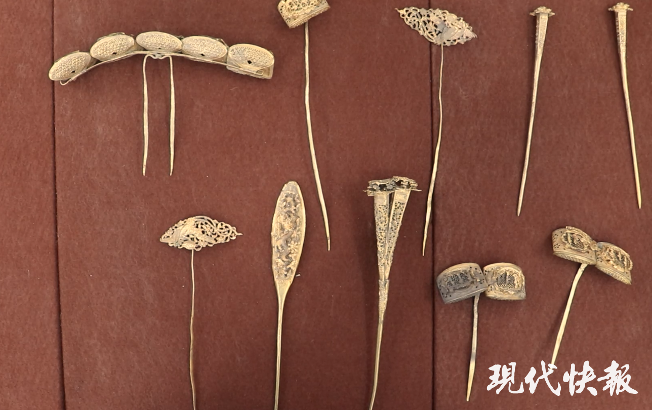 2024年2月,句容市公安局根据线索将刘某某查获归案,沈某某随后主动投案。案涉文物被悉数追回。经鉴定,这39件首饰均为宋、元时期的银鎏金簪饰,其中有二级文物4件、三级文物6件,其余29件银鎏金簪饰以及涉案陶罐为一般文物。