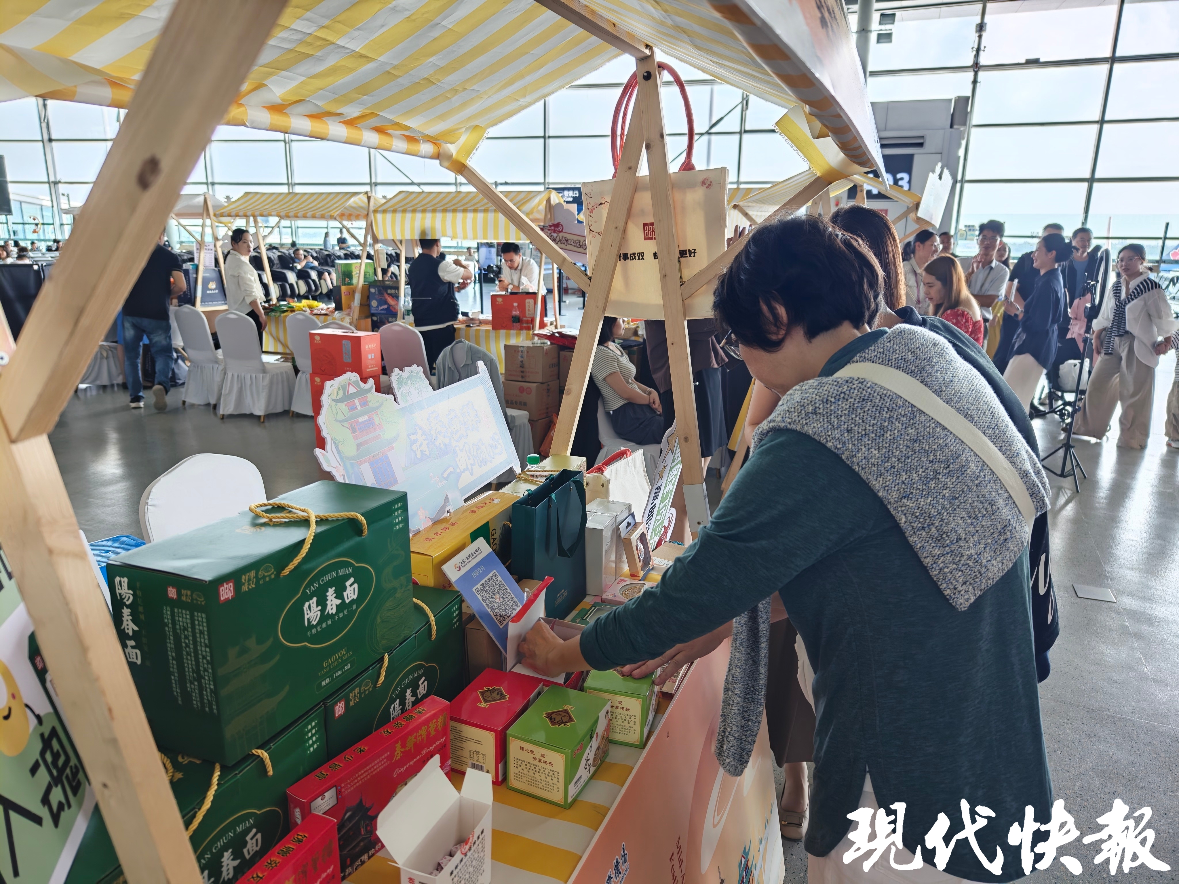 1日当天,文旅也来助阵。机场在候机区策划了一场别开生面的“寻味高邮,‘邮’此启航”主题市集活动,地方特色表演、农产品等琳琅满目,让旅客在出行途中也能感受到节日的喜庆和家乡的味道。