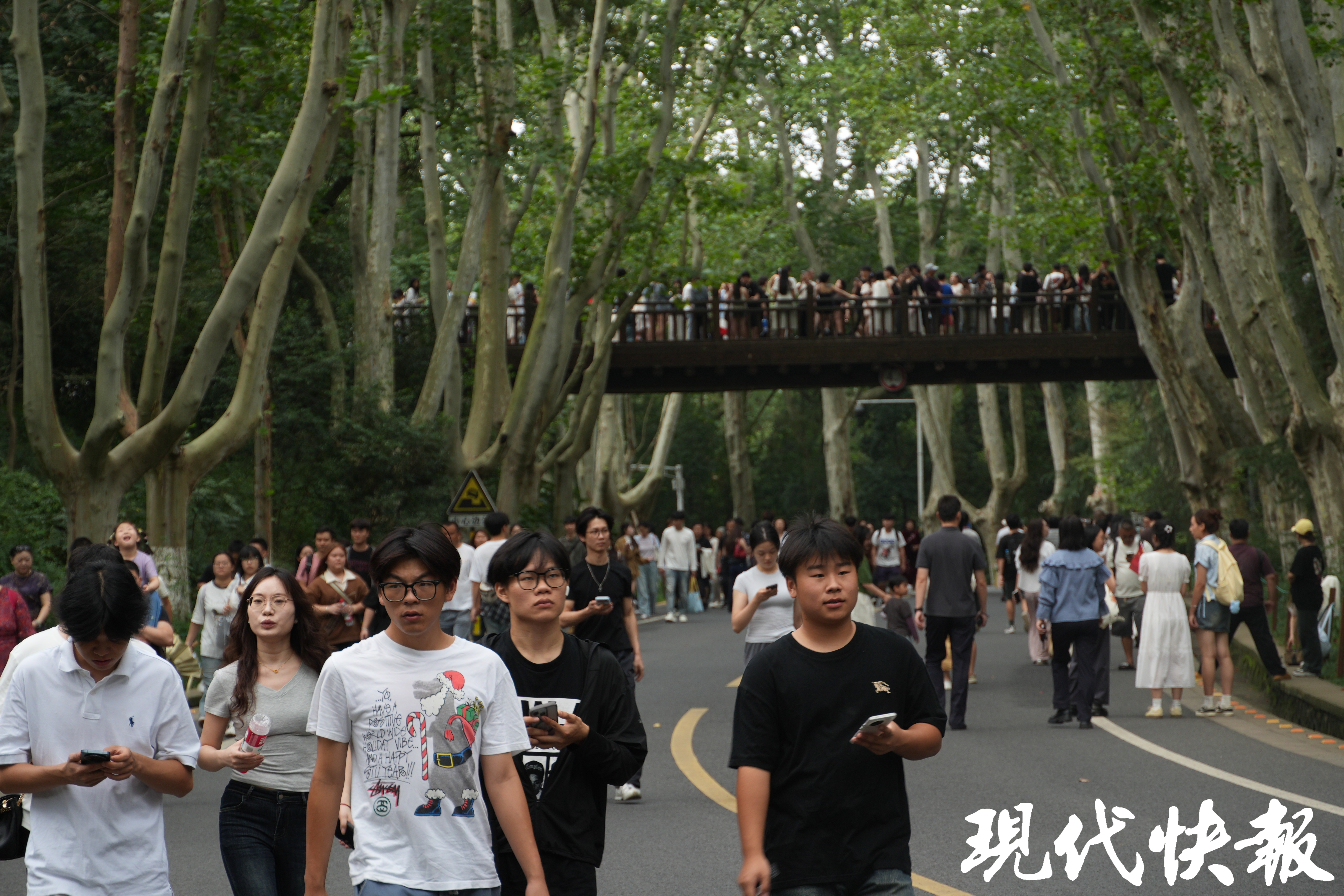 10月1日是南京钟山风景区实施交通提升改造的首日。现代快报记者兵分多路探访发现,上午9点半,梧桐大道已经人头攒动。不过无论是预约开车进出景区,还是在陵园路漫步,现场秩序都较为良好。在各个交通枢纽及重要路口,有多名交警,以及交通、景区工作人员和志愿者在现场疏导及维持秩序。不少游客从地铁站出来就直奔接驳站点,多个接驳站点“车等人”。“太感谢了,体验很好。景区这么大,我们第一次来有点辨不清方向,亏得有志愿者帮忙。”来自浙江的游客林先生说。