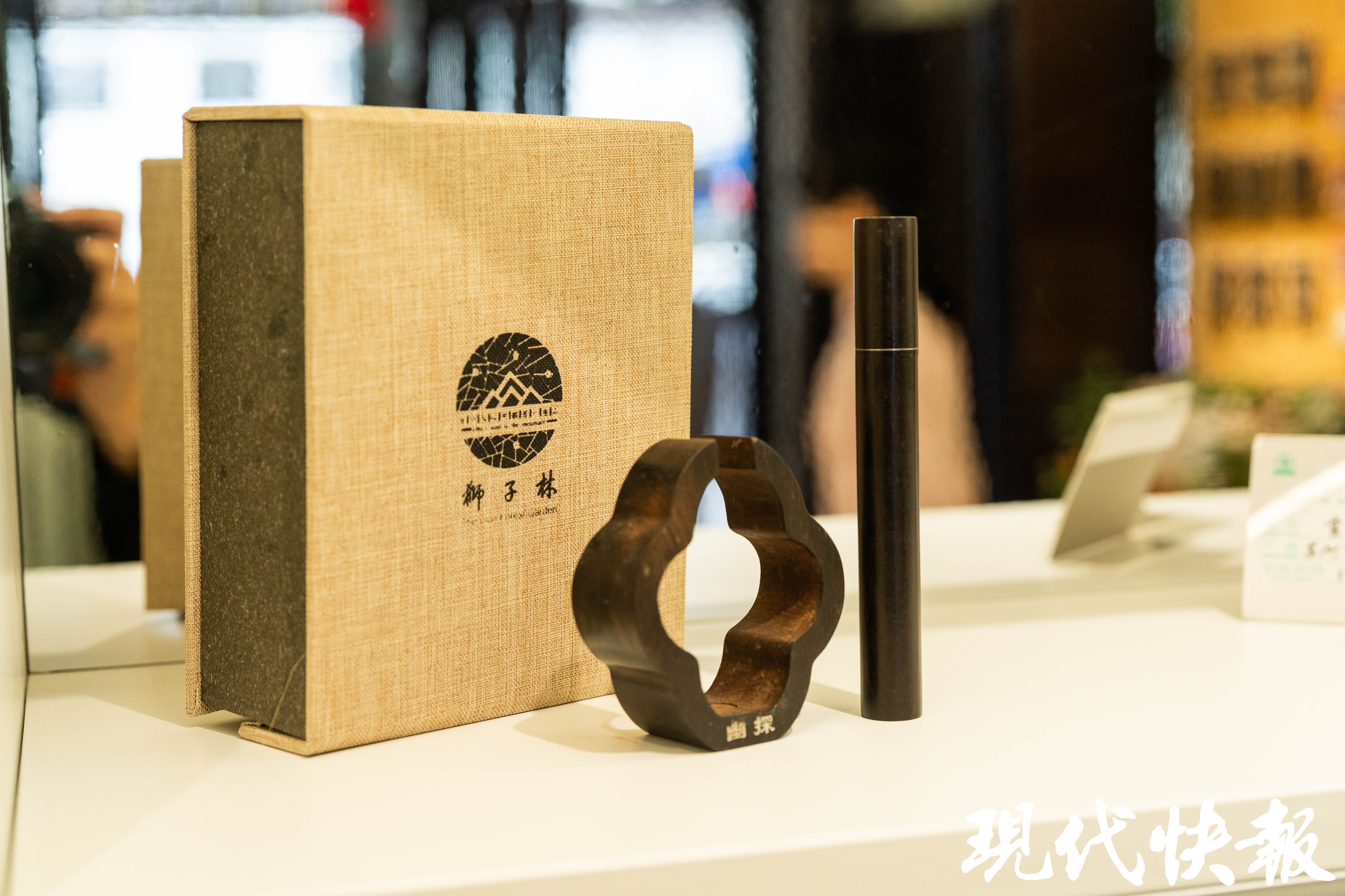 现代快报记者了解到,此次文创店升级不仅是空间品质上的提升,更在内容策划、产品设计与艺术表达上实现突破,推出多款深度融合狮子林品牌IP的原创精品。其中,“转心杯”灵感源自清代乾隆时期的转心瓶工艺,巧妙融合园林花窗元素与现代器物结构,选用胡桃木与白蜡木打造,手感温润,配套杯套兼具防烫与环保再利用功能,实现实用性与艺术性的统一;“四艺笔筒”则提取狮子林内著名的云墙轮廓与“琴棋书画”四艺花窗图案,采用水泥与金属材质重新演绎,呈现古典与现代交融的独特美感。这些文创产品不仅是对园林艺术的创新表达,也为游客提供了可回味、可分享的园林记忆。