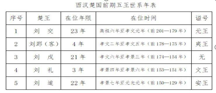 史料记载,西汉楚国前期一共有5代楚王,都是汉高祖刘邦的皇家宗室子弟,确切地说都是刘邦同父异母弟弟刘交这一脉的。