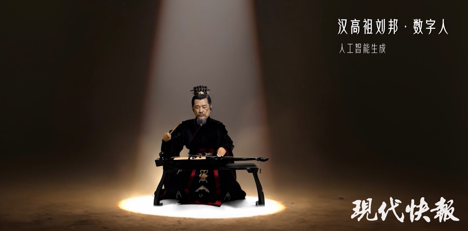 其一,便是刘邦的“出场”本身。这场亮相远非简单的登台,而是一场精心构建的“情景再现”。数字人刘邦并未静立,而是还原了他击筑而歌的经典场景。随着筑声铿锵,他本人也沉浸于韵律之中,继而以一副睥睨天下的姿态,吟诵响彻千古的《大风歌》。