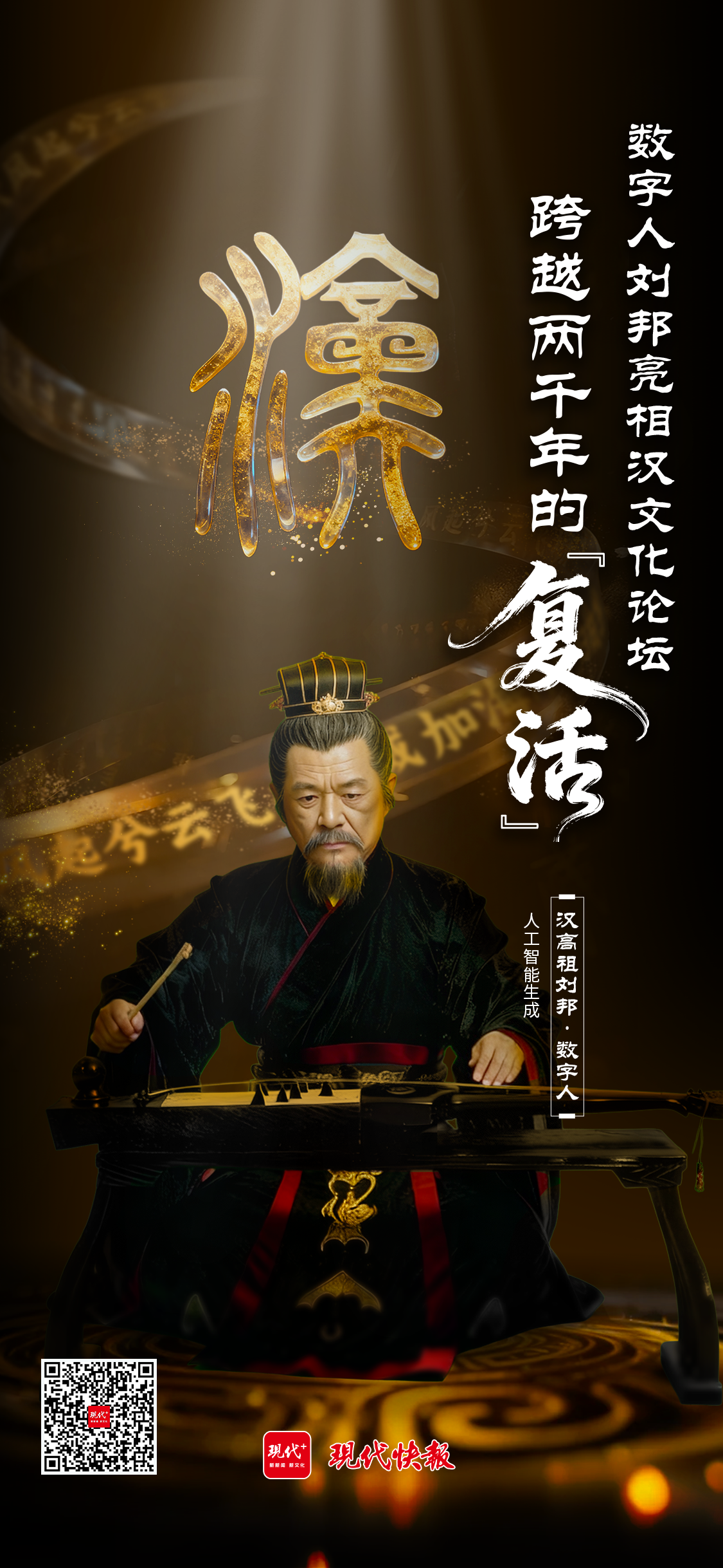 11月5日,在第三届汉文化论坛上,一场跨越两千年的“相见”正在上演。会场灯光渐暗,一束追光落下,汉高祖刘邦——不再是古籍中静态的文字或后世想象中模糊的画像,而是以一个栩栩如生的数字人形象,穿越时空,昂然“出现”在众人面前。
