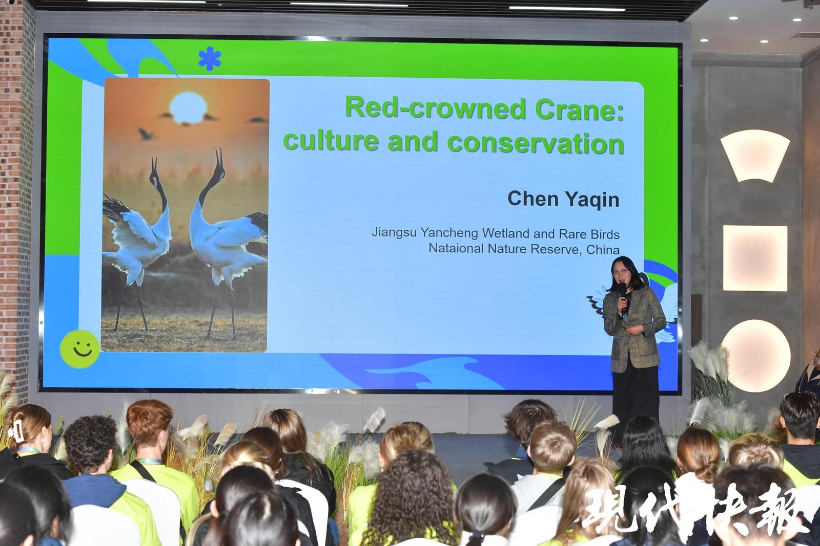 本次沙龙活动特别邀请了资深观鸟人、自然科普作家袁屏,以及来自江苏盐城湿地珍禽国家级自然保护区的专家陈亚芹,现场分享了她们与湿地的故事,并解答学生感兴趣的与丹顶鹤有关的问题。