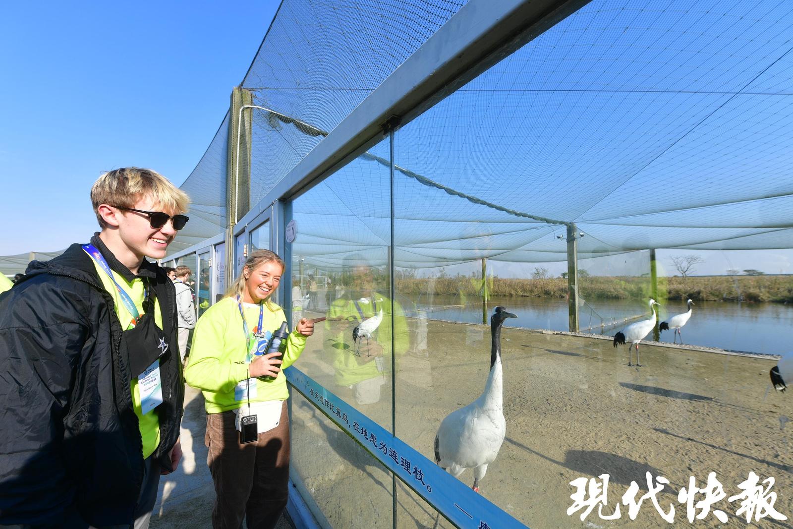丹顶鹤、麋鹿、獐子、戴胜……随后,中美青少年在“生态眼”用望远镜观赏万千奇妙的湿地生灵,直观感受人与自然和谐共生的生态画卷。