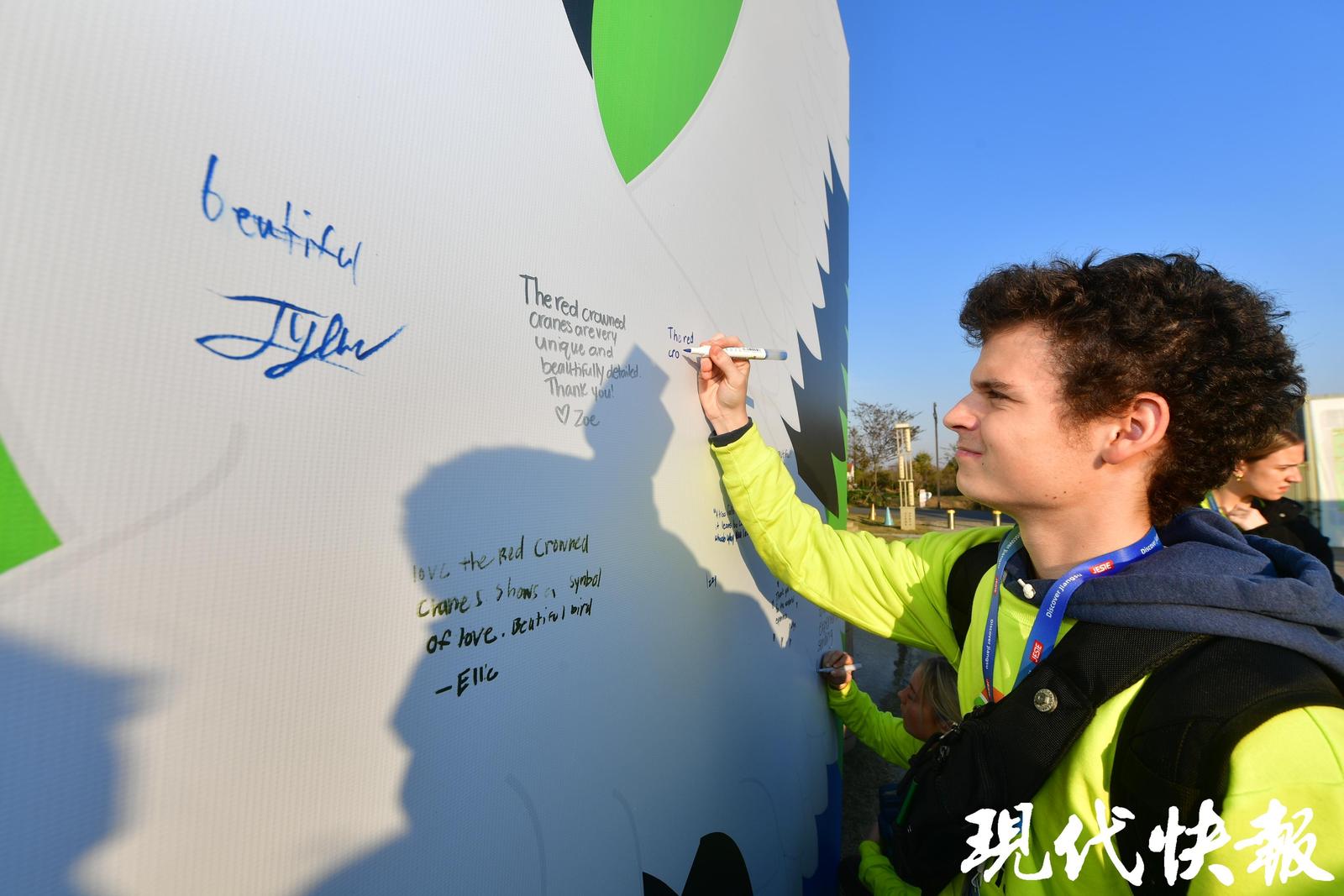 “我写的是,这里的一切让我震撼,丹顶鹤非常美。”美国学生安娜玛丽·沃尔弗被盐城的自然风光深深震撼,无论是展览中展出的照片,还是在保护区亲眼所见的一切,都令她惊叹。“丹顶鹤与麋鹿非常漂亮。”