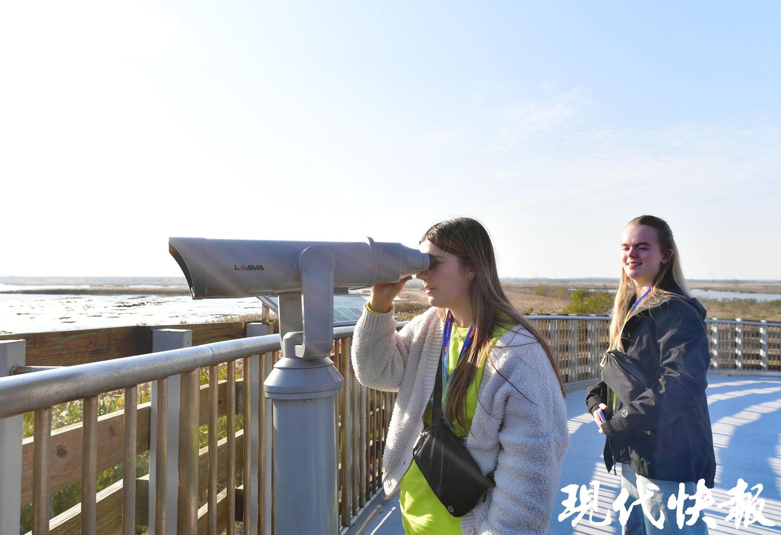活动当天,中美学生共同开启了一场自然探索之旅,走进江苏盐城湿地珍禽国家级自然保护区,近距离观鸟看鹤,沉浸式感受“东方湿地之都”盐城的生态之美。
