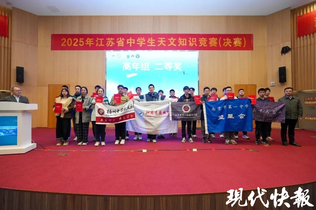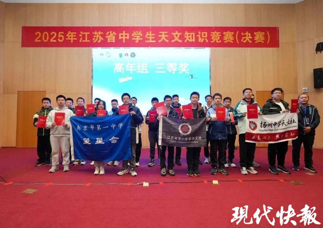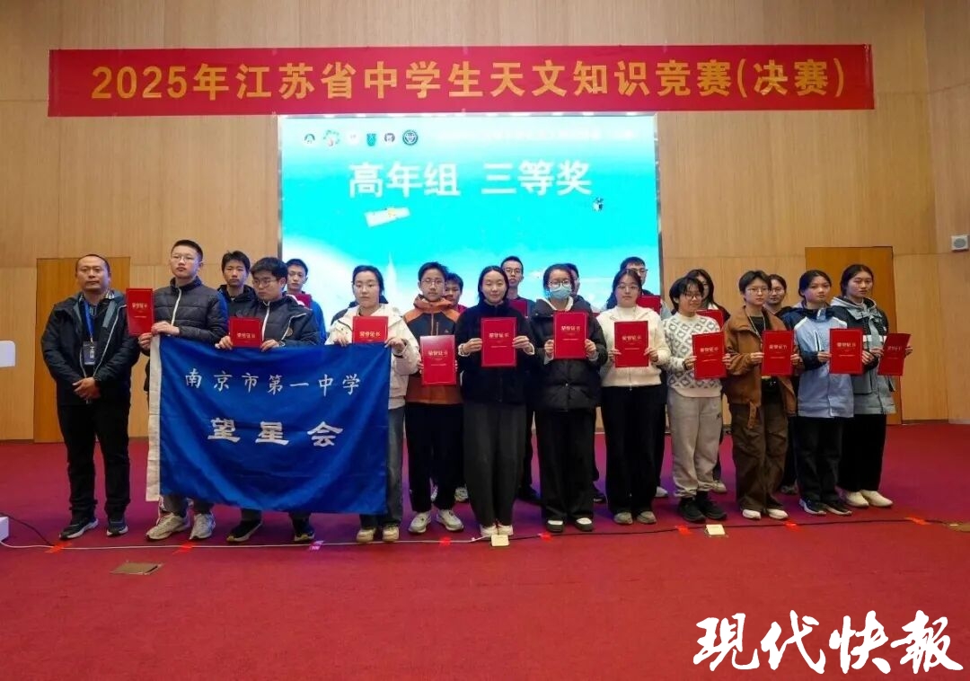 11月23日,2025年江苏省中学生天文知识竞赛决赛在南京一中举行。本次赛事由江苏省天文学会、江苏省青少年科技中心、江苏省科学传播中心、江苏省青少年科技教育协会联合主办,南京大学天文与空间科学学院、南京市第一中学共同承办。历经理论赛与观测赛的激烈角逐,南京一中7名崇文学子凭借扎实的知识储备、敏锐的思辨能力和出色的临场发挥,斩获决赛奖项。