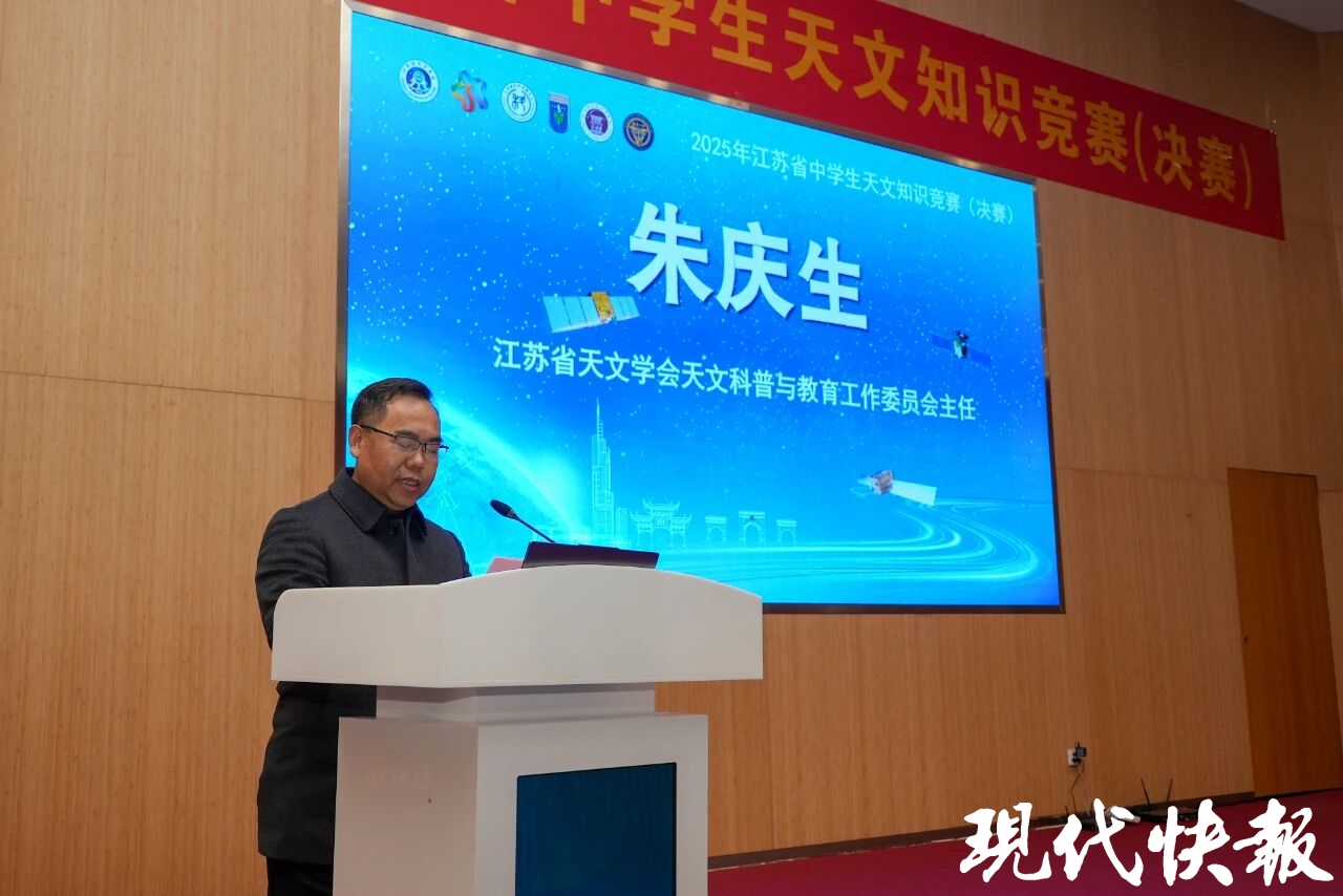 江苏省天文学会天文科普与教育工作委员会主任朱庆生研究员介绍竞赛整体情况,他强调天文学作为基础学科的重要价值与育人意义,并指出天文知识竞赛不仅是检验学习成果、拓展思维的平台,更鼓励同学们享受竞赛过程、在相互激励中成长,以此次参赛为起点,持续攀登科学高峰。