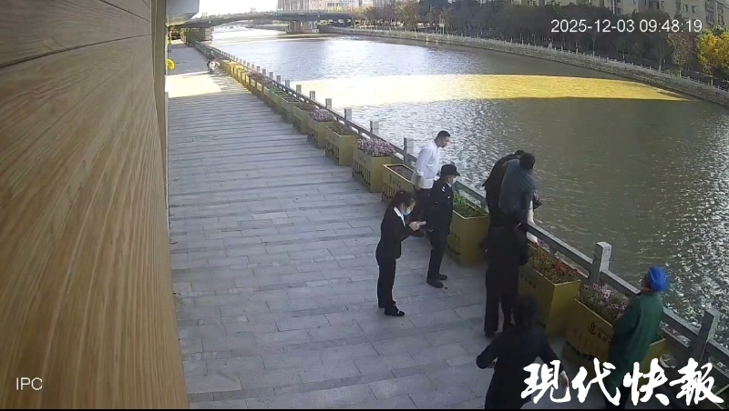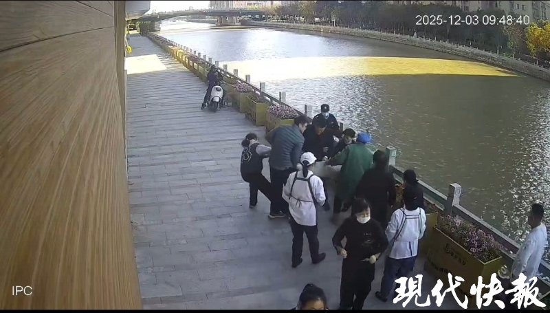 “不好!那人可能要跳河!”店员钱洋和顾客赵敬文等人见状迅速冲出店门追去,就在女子翻过护栏跳下河的一瞬间,钱洋一个箭步冲上前,一把拽住女子的外套,赵敬文紧随其后,两人紧紧攥住女子挥舞的手臂。然而女子一直在挣扎着企图摆脱,一时无法拉上岸。