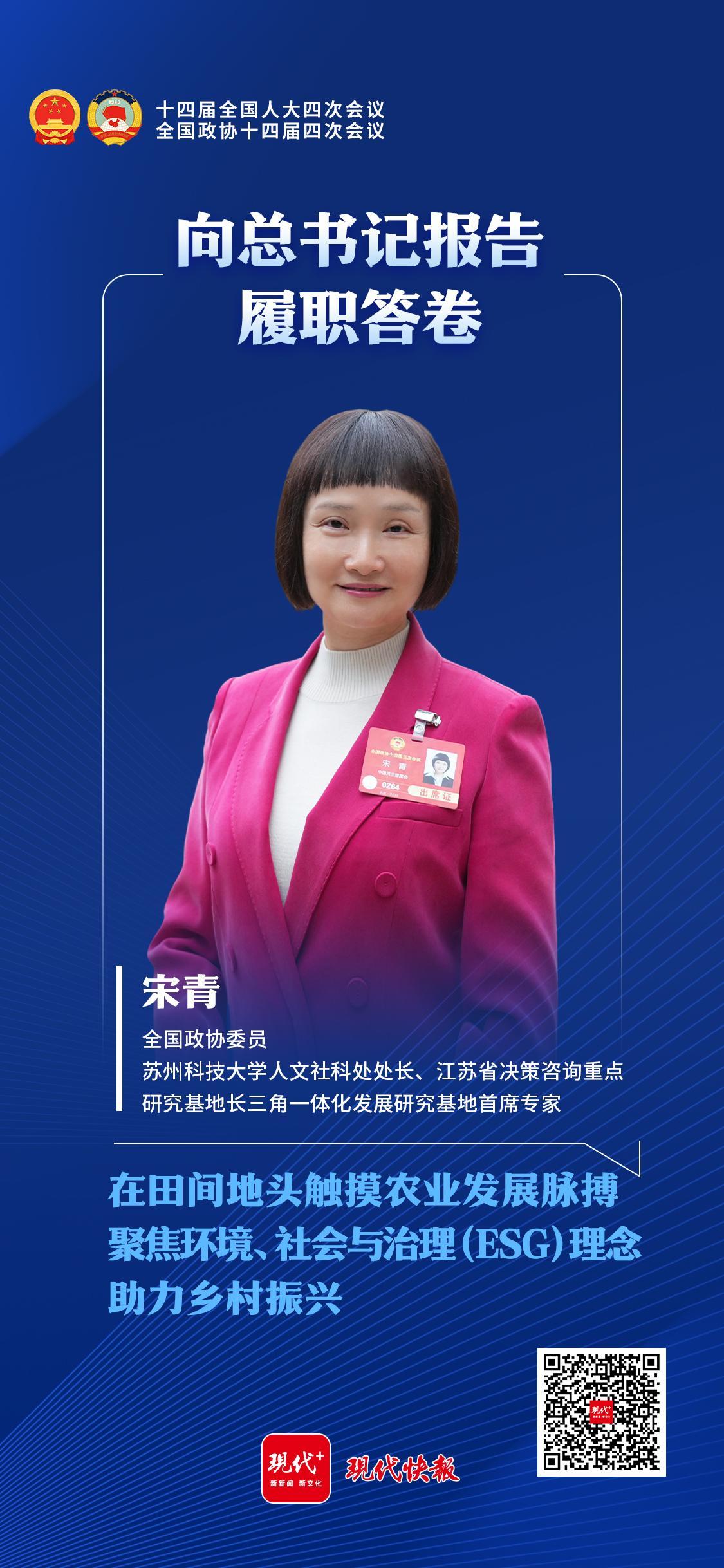 作为全国政协委员,苏州科技大学人文社科处处长、江苏省决策咨询重点研究基地长三角一体化发展研究基地首席专家宋青,履职的步履不停。过去一年,宋青奔赴山东等地调研收获颇丰,为她履职建议提供了丰富素材与深刻思考。近日,宋青接受现代快报记者采访时提到,她持续关注如何以新质生产力“含绿量”培育农业高质量发展“含金量”,聚焦将环境、社会与治理(ESG)理念深度融入乡村振兴战略等议题,她将把自己对这些问题的思考和建议带到2026年全国两会上。
