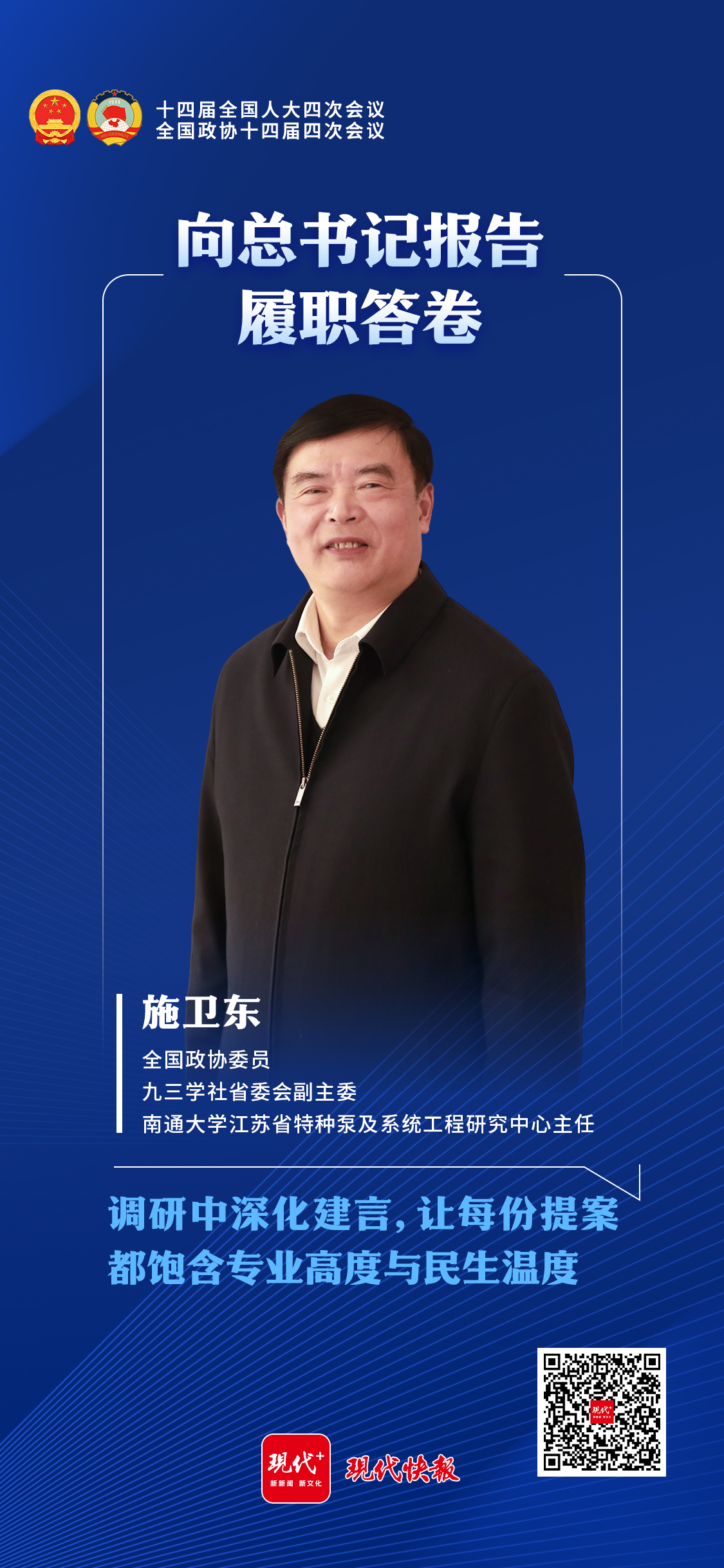 在施卫东看来,要当好政协委员,最重要的是要有一颗为民服务的真心,真正能够沉下身子、迈开步子、开动脑子,以实际行动推动问题解决。“29年全国、省、市政协委员的履职经历,让我深切感受到中国共产党领导的多党合作和政治协商制度无比的优越性。”他表示,新时代人民政协的舞台更加宽广、责任更加重大,自己将不断努力学习,更好担负起人民政协制度参与者、实践者、推动者的使命和职责。
