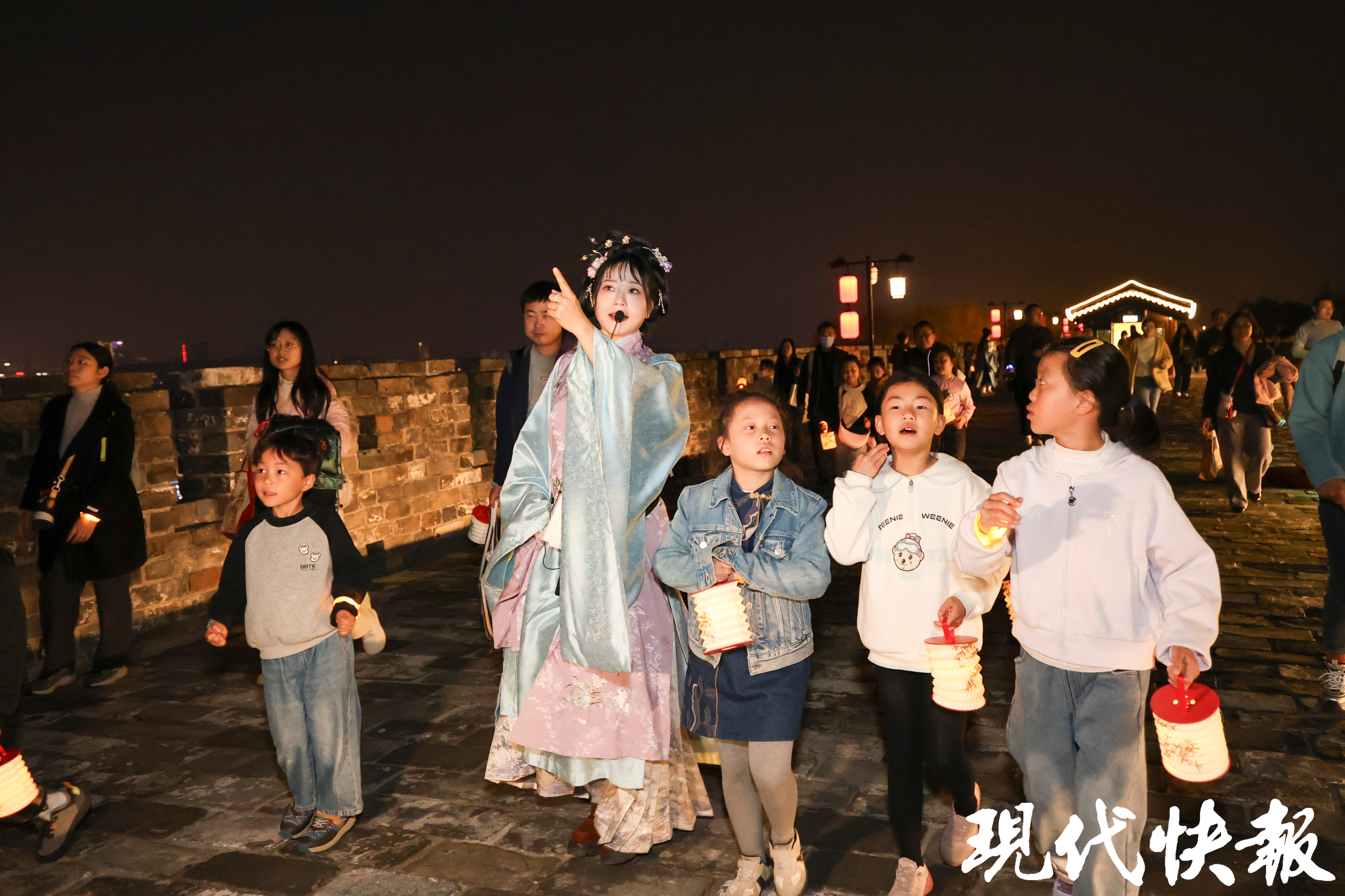 “平时白天带孩子来过城墙,但晚上提着灯笼边走边学,感觉完全不一样。”参与活动的家长李女士告诉记者,这种“可读、可感、可互动”的方式,让沉睡的历史在夜色中“开口说话”。