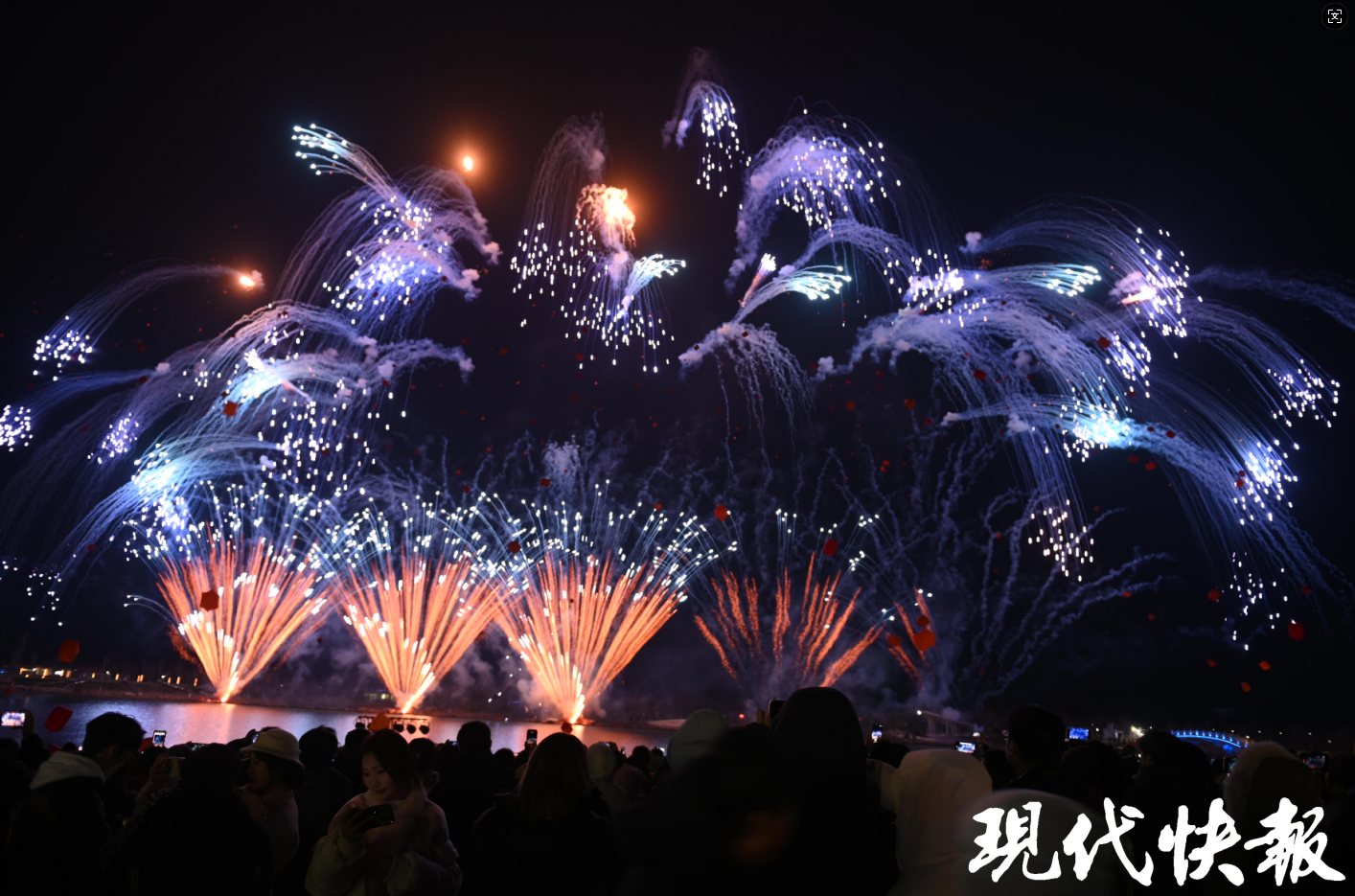 作为活动核心亮点,两场烟花秀让现场观众直呼“震撼”。20:00—20:25的首场户外焰火盛典,由湖南浏阳顶级团队打造,数百米燃放阵地之上,数万发特效烟花次第绽放。而00:00准时登场的跨年限定烟花秀更显浪漫,国内首创的蓝色烟花如流星划过夜空,与千盏承载心愿的孔明灯精准联动,湖面之上光影流转,构成“火树银花不夜天”的绝美画卷。