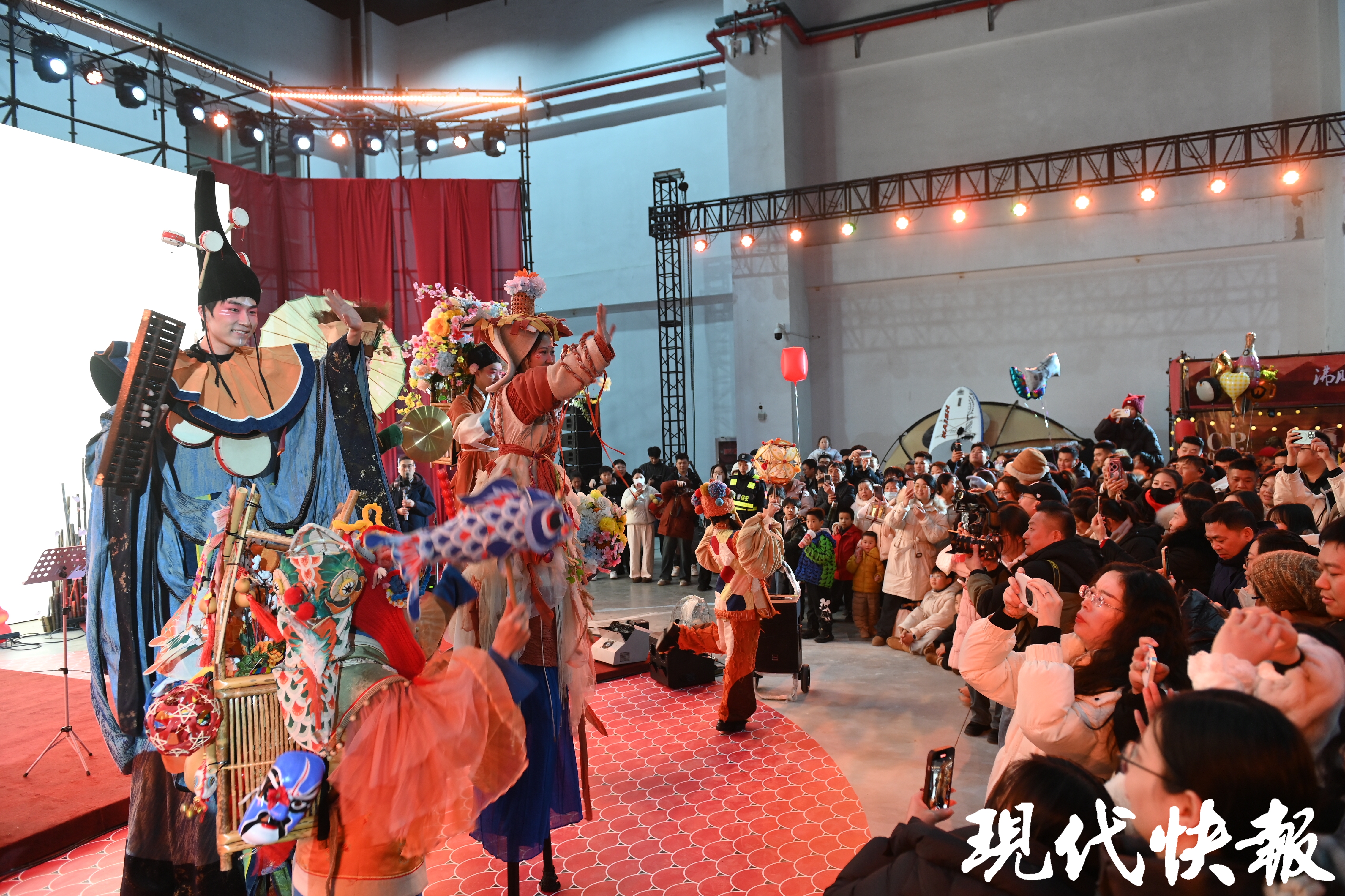 当晚,云栖馆内的烟火市集,30余个摊位集结了非遗手作、地方特色美食、创意文创和茶饮小吃,形成“观赏+游玩+消费”的完整闭环。活动期间,园区贴心设置多项便民服务:亚欧巨舰区域提供免费热水,云栖馆开放空调作为温暖休息区,市政府与工贸学院的免费往返班车解决了出行难题。打卡福利同样吸睛,游客凭门票扫码可领鸡蛋,参与九宫格打卡还能免费兑换文创雪糕,遍布园区的龙纹装置、灯笼串等打卡点让大家快门不停。