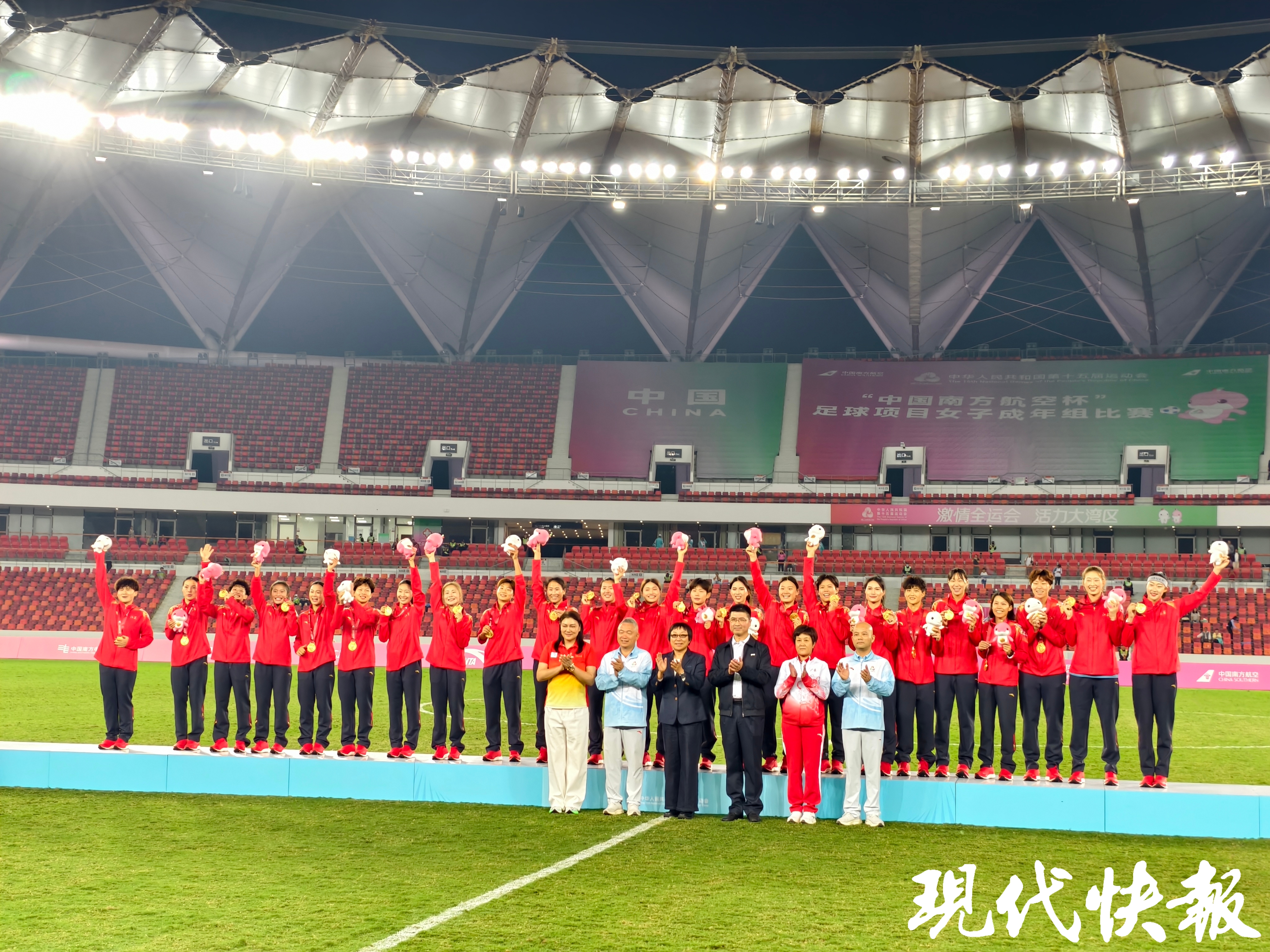 现代快报讯(记者 王卫)11月15日晚,第十五届全运会足球项目迎来最后一项决赛,在女子足球成年组决赛中,江苏女足凭借霍悦欣最后时刻的绝杀,以1:0战胜湖北队,取得冠军。今年,苏超联赛在全国掀起足球热潮,在十五运中,江苏女足也不负众望,拿下了这枚宝贵的金牌!