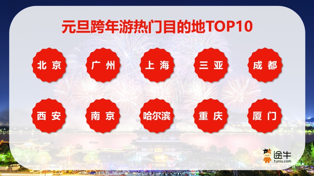 跨年游热门目的地中,北京、广州、上海、三亚、成都、西安、南京、哈尔滨、重庆、厦门等城市备受青睐。