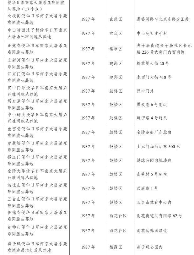 北极阁、中山陵西洼子村、正觉寺、上新河、江东门、汉中门、煤炭港、中山码头、鱼雷营、草鞋峡、挹江门、金陵大学、清凉山、五台山、普德寺、花神庙、燕子矶……17处被公布为全国重点文物保护单位的侵华日军南京大屠杀死难同胞丛葬地,如同17枚沉痛的铆钉,将一段浩劫的历史牢牢锚定在这座城市的肌体上。