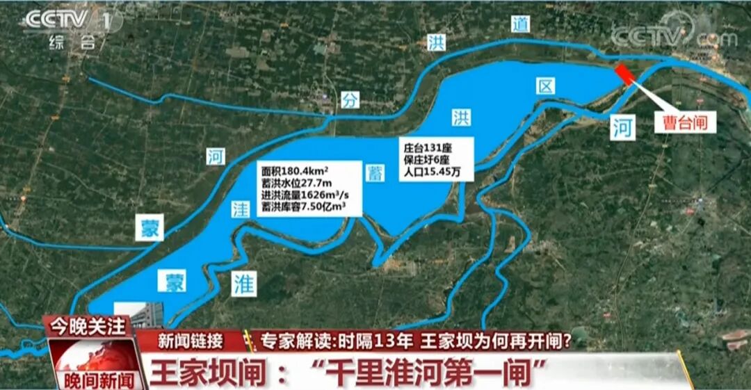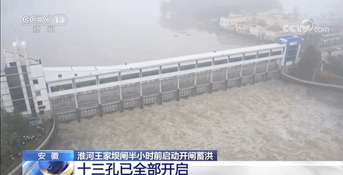 20日8时起,淮河水利委员会提升淮委水旱灾害防御应急响应至I级,并发布洪水红色预警。淮河流域防汛形势十分严峻。为缓解淮河防汛压力,20日8时31分,王家坝13孔闸门全部开启,向蒙洼蓄洪区分洪。