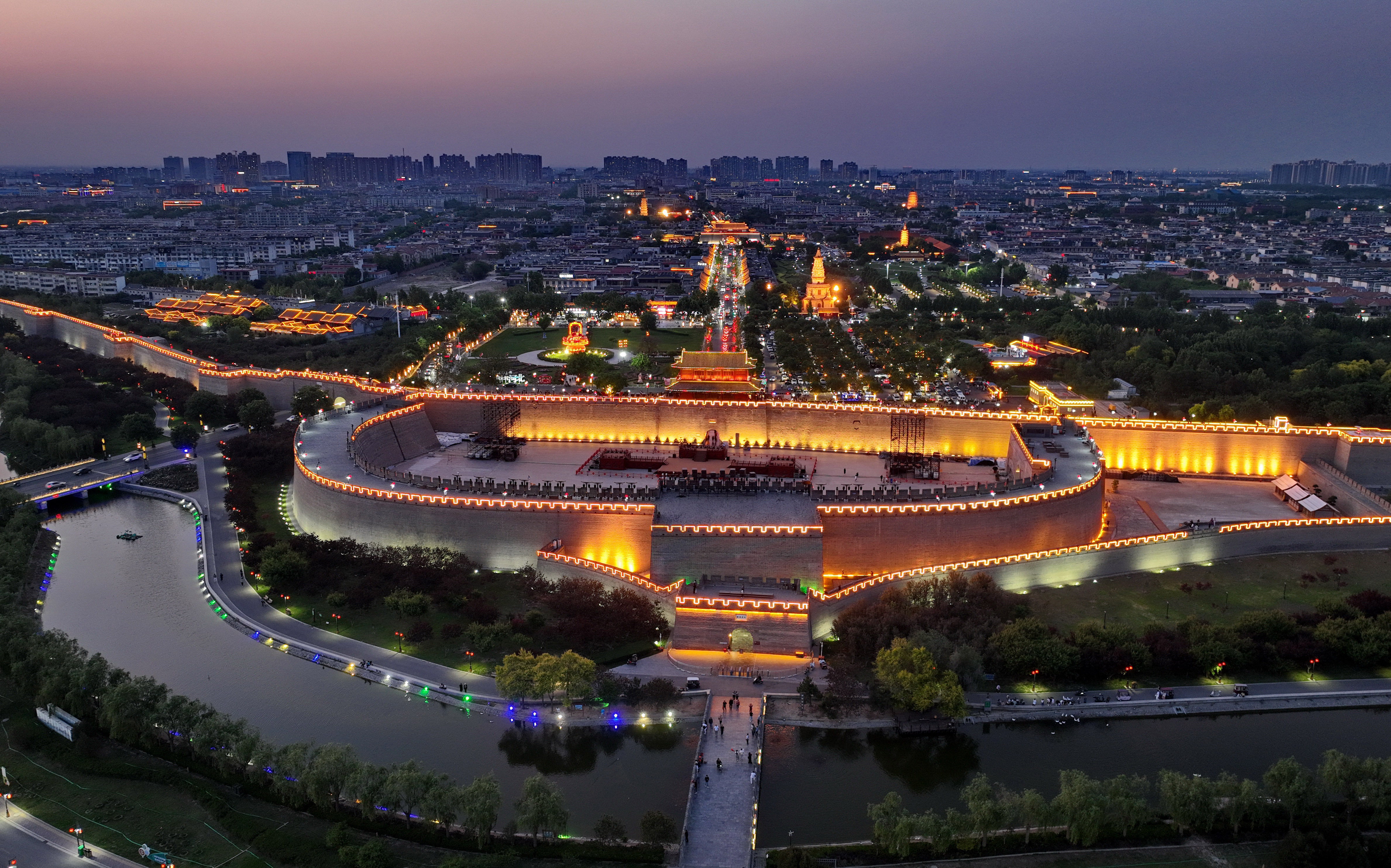 2025年5月15日,河北正定古城夜景(无人机照片)。 新华社记者 杨世尧摄