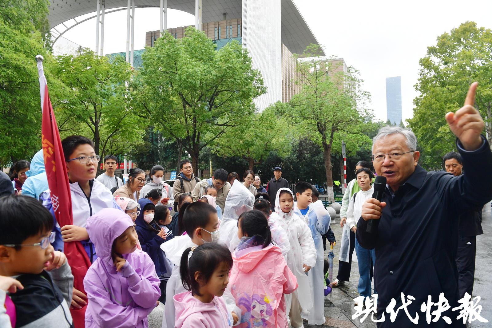转至长江路,总统府静立一旁。薛冰继续讲述:“这里曾是明代的汉王府,清代则为两江总督署。这里也做过天王府,太平天国失败后,曾国藩重建两江总督署。”一旁的东西箭道,则因总督府演兵场得名。“东箭道还曾跑过火车”,薛冰补充道,“1909年通车的‘宁省铁路’,曾经被南京人亲切地称为‘小火车’,正是从这一带穿行而过。”这段早已消失的铁路往事,引发小记者阵阵惊叹,“我们现在每天路过的马路竟然还跑过火车。”
