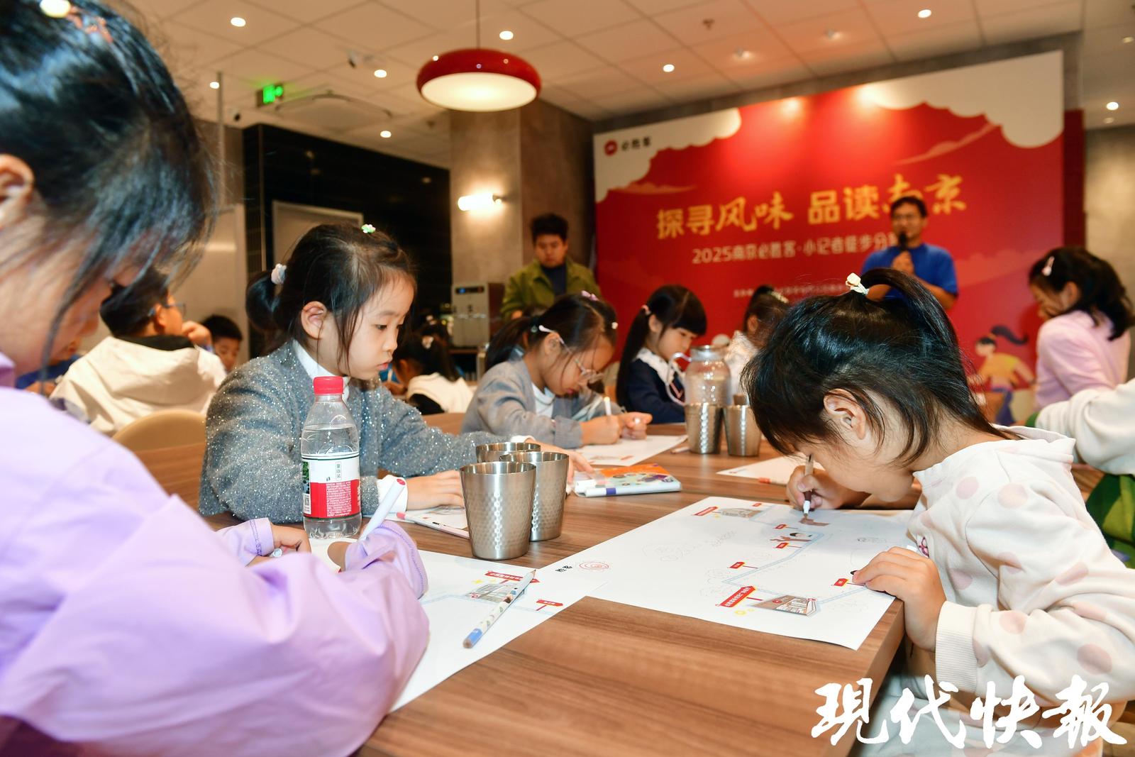 徒步一小时后,队伍抵达终点站——必胜客锦创书城餐厅。孩子们在这里与薛冰老师围坐交流,并拿起画笔,勾勒出沿途最打动他们的画面。有的画下“总统府”,有的绘出南唐古桥“竺桥”,用色彩与想象,重现历史的片段。