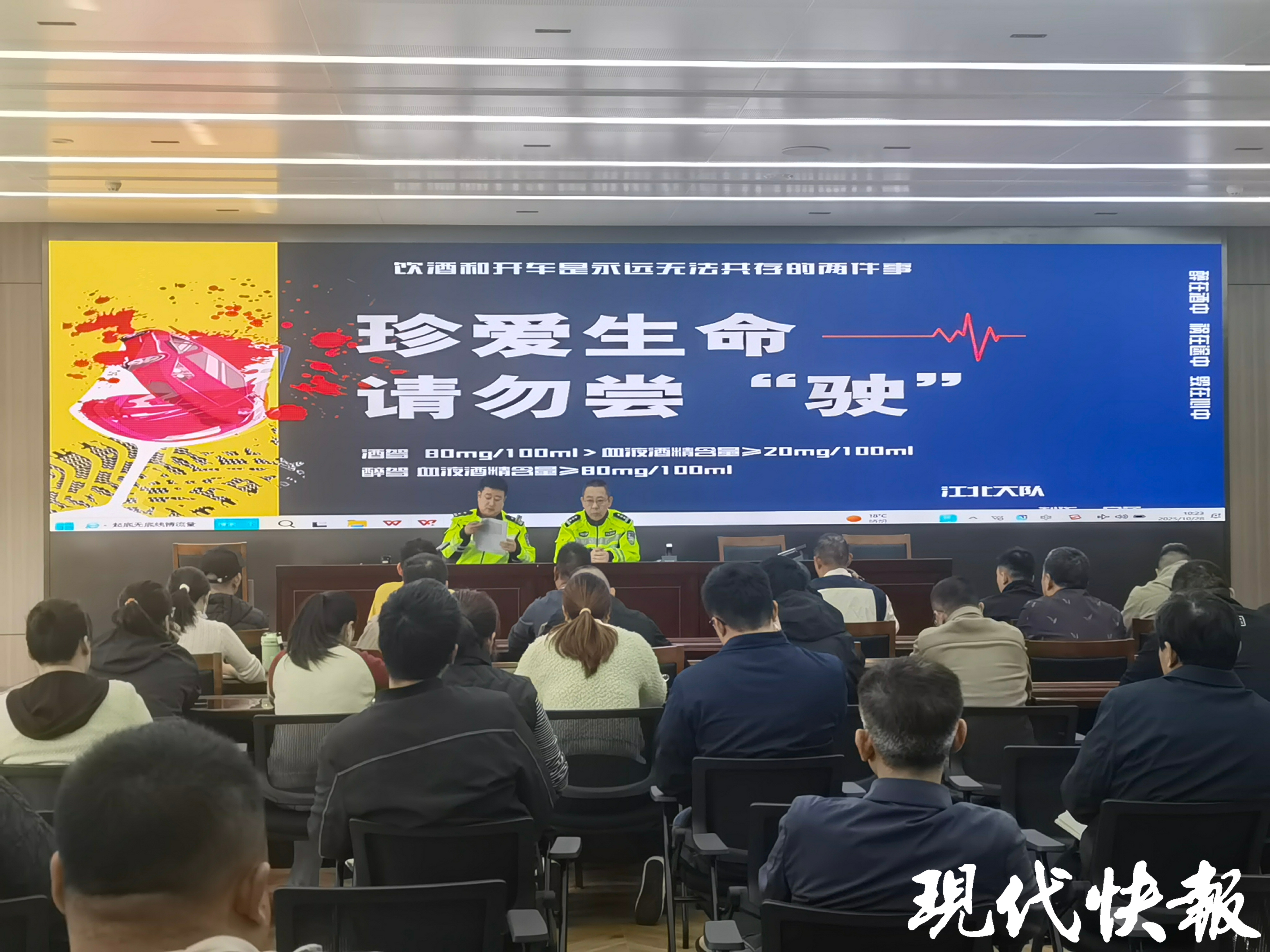 现代快报讯(通讯员 房蓓 记者 王瑞)近日,针对秋冬季雾天增多、昼夜温差大及货运、外卖出行量增加等季节特点,南京市公安局交通管理局江北新区大队组织召开重点行业交通安全宣传会,辖区重点运输企业、外卖快递企业负责人悉数参会,旨在从源头压实安全责任,防范道路交通事故发生。