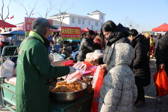 置办年货,是刻在中国人骨子里的过年“仪式”。2月8日的响水潘庄大集,堪称一场热气腾腾的“年味博览会”。清晨带着露珠的本地果蔬、纹理分明的“猪响响黑猪肉”、活蹦乱跳的鱼虾、色泽鲜亮的散养禽蛋……每一份食材都散发着原生态的鲜香。摆摊十年的村民赵海忙得不亦乐乎:“现在大家更讲究健康养生,我这些土特产,像小黄米、草鸡蛋、野菜干,卖得特别俏,不少城里人都专门来买。”