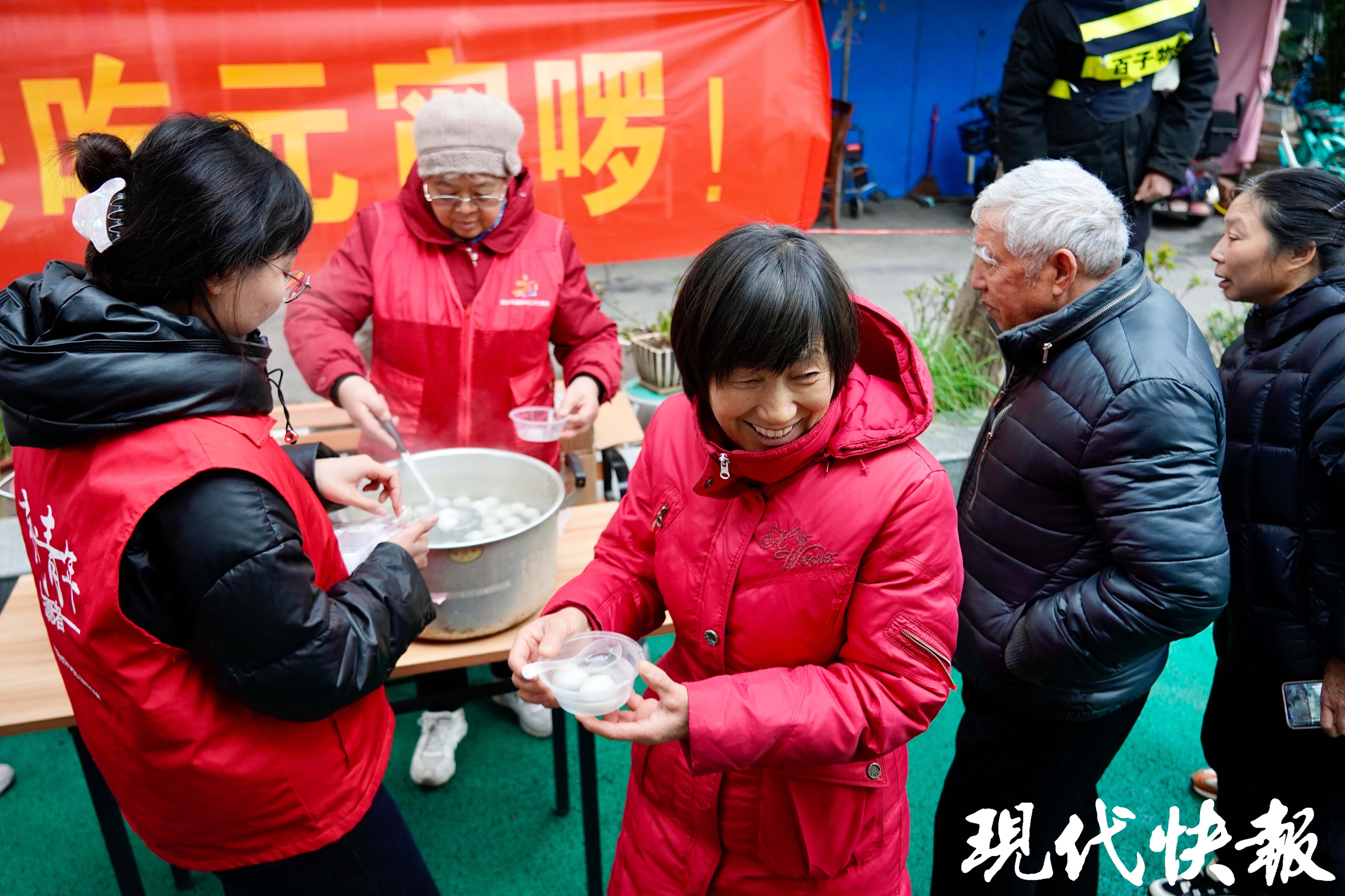 最暖心的场景出现在广场一角。社区银发互助公社的志愿者忙前忙后,将一碗碗刚出锅的热气腾腾的汤圆递到居民手中。“来来来,趁热吃!”大家围坐在一起,边品尝软糯的汤圆,边聊起家长里短,甜在嘴里,暖在心里。