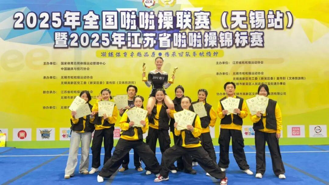 盐城机电闪耀全国赛场,啦啦操健儿载誉而归!在刚刚落幕的2025年全国啦啦操联赛分站赛(无锡站)中,盐城机电高等职业技术学校啦啦操队在花竹玉老师的精心指导下,凭借出色的表现和顽强的拼搏精神,最终摘得两枚金牌、一枚银牌及两枚铜牌,再次刷新历史纪录!