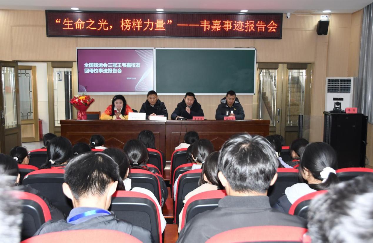 冬日暖阳,朔风拂面。12月19日上午,盐城市盐都区龙冈初级中学校园内暖意融融、掌声雷动,全国第十一届残运会“三冠王”韦嘉校友载誉归来,为学校师生带来了一场题为“生命之光,榜样力量”的励志事迹报告会,用拼搏故事点燃学子奋进热情。