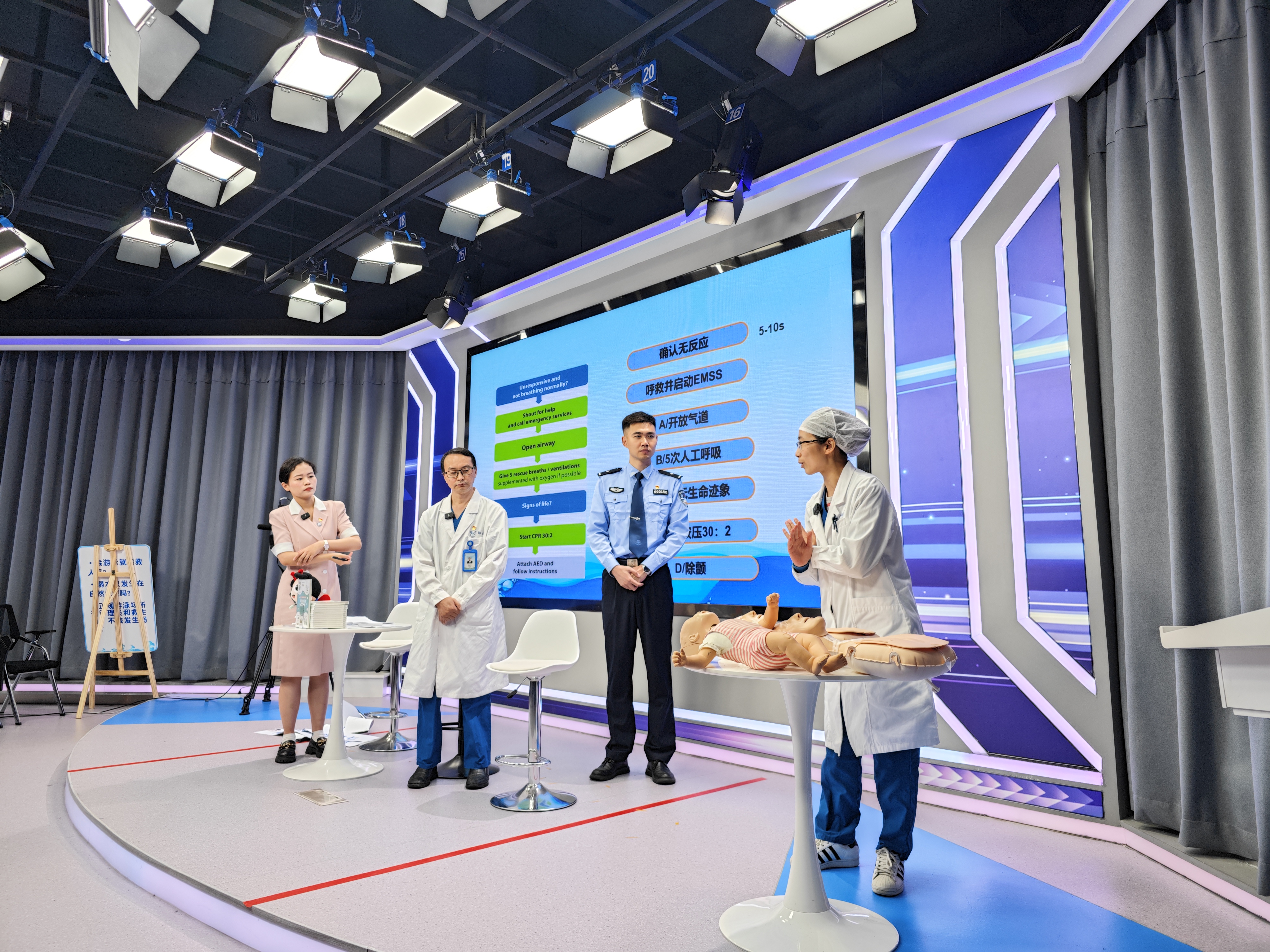 现代快报讯(通讯员 赵倩楠 记者 严君臣)“下河游危险,危险!NO,NO,NO,不能去呀!”长航南通公安防溺水儿童歌曲《勇气大爆发》在南通大学附属医院融媒中心演播室循环播放。近日,通大附院联合长航南通公安,通过多个网络平台,以网络直播方式,为广大群众和网友带来了一场别开生面的夏季防溺水“知识盛宴”。短短一个半小时,近30万人在线观看,好评数15.5万余条,通过直播活动通过科普讲解、互动问答、急救教学等形式,为现场的小朋友和观看直播的网友们普及了防溺水安全知识。