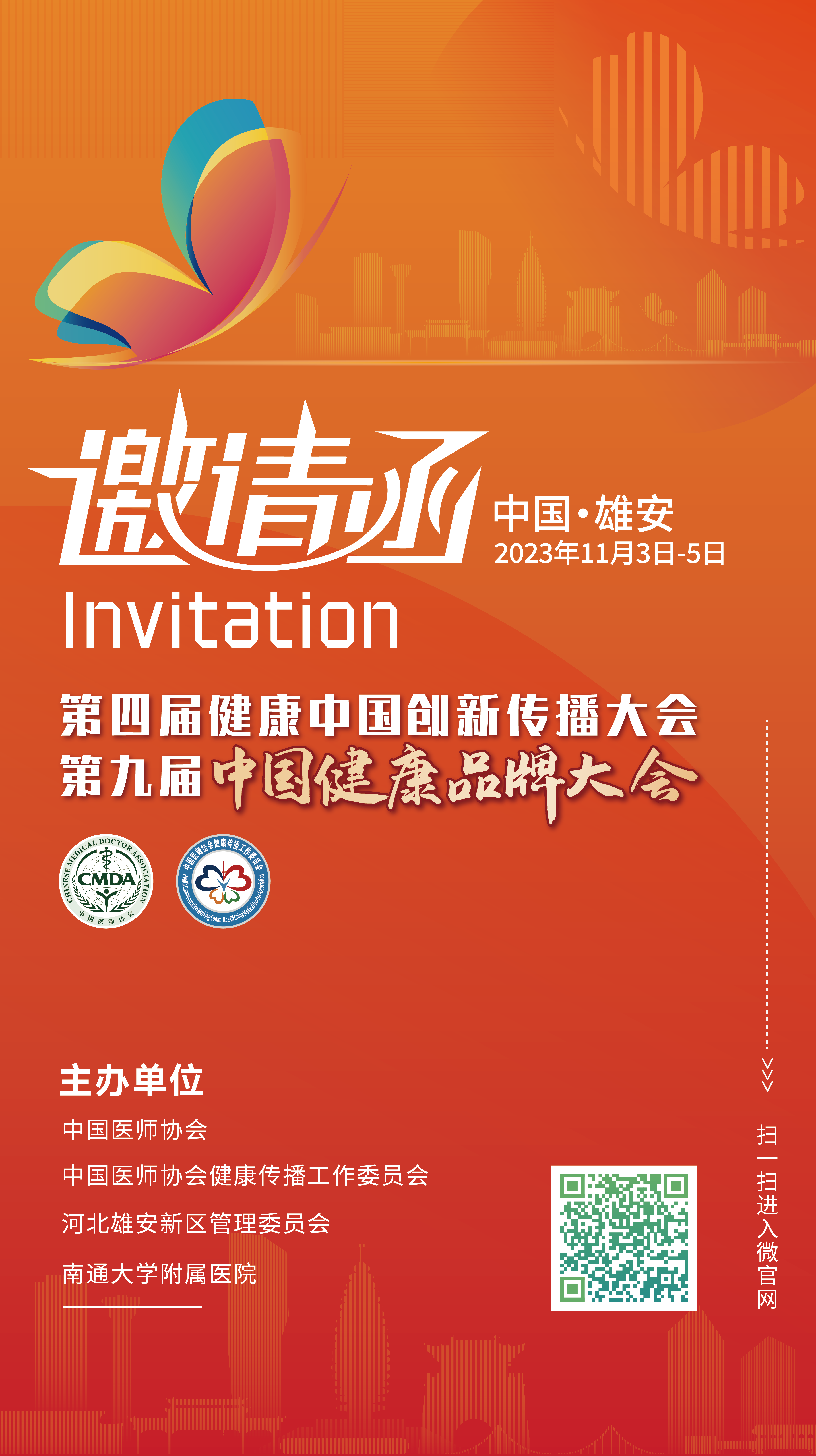 第四届健康中国创新传播大会暨第九届中国健康品牌大会是中国医师协会健康传播工作委年度工作会,更是健康传播领域的业界盛会,定于11月3—5日在雄安新区召开。大会主办方为中国医师协会、中国医师协会健康传播工作委员会、河北雄安新区管理委员会、南通大学附属医院。