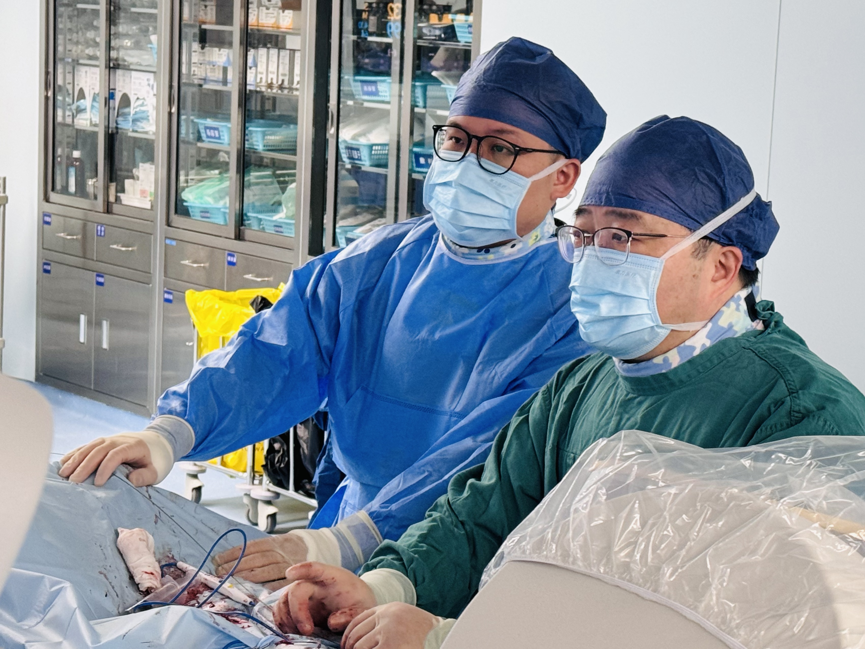 经过评估,尤庆生团队在经过控制血压、控制疼痛等应急处置后,进行主动脉覆膜支架腔内隔绝术。“介入支架植入术已成为目前B型主动脉夹层治疗的首选,通过封闭内膜第一破口,促使假腔内血栓形成来阻止主动脉夹层的进一步演变。与传统手术相比,具有疗效确切、创伤小、病死率低、并发症少,术后恢复快等优势。”尤庆生告诉记者。