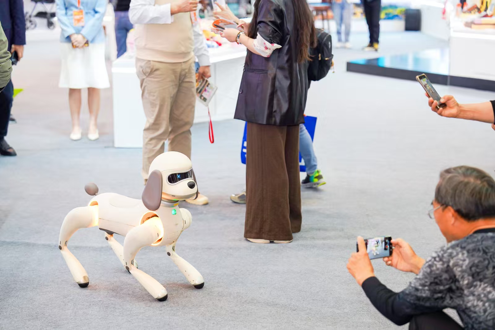 值得关注的是,由巨星传奇与宇树科技联合打造的四足机器狗“巨星狗”亦亮相文博会,成为现场焦点,吸引大量观众驻足互动与拍照。