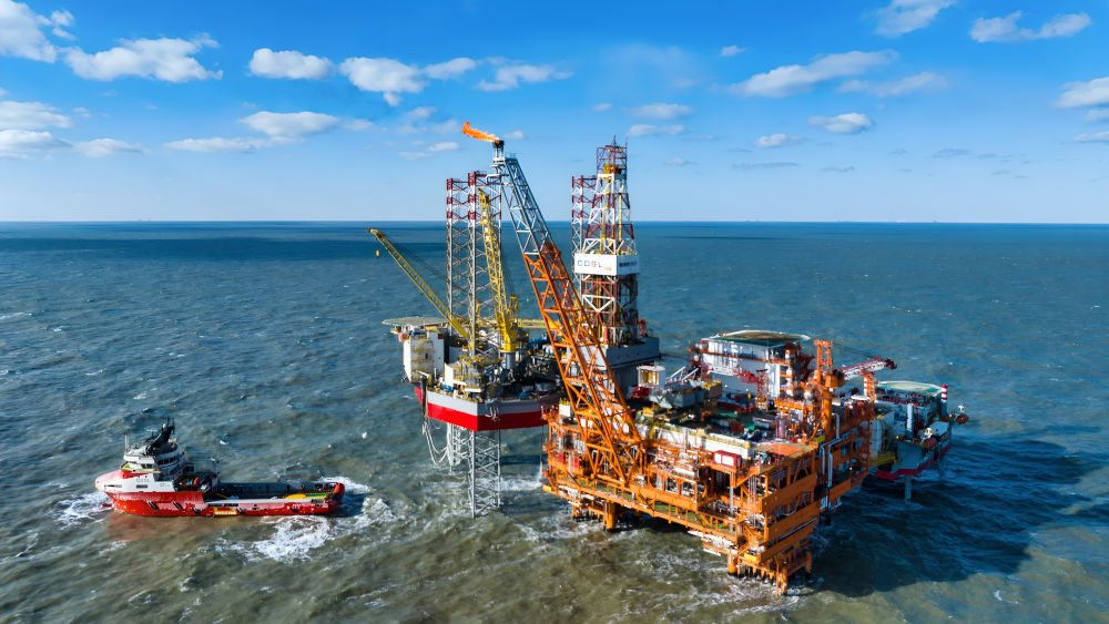 △这是2025年2月8日拍摄的渤中26-6油田一期开发项目海上作业平台(无人机照片)。新华社发(杜鹏辉 摄)