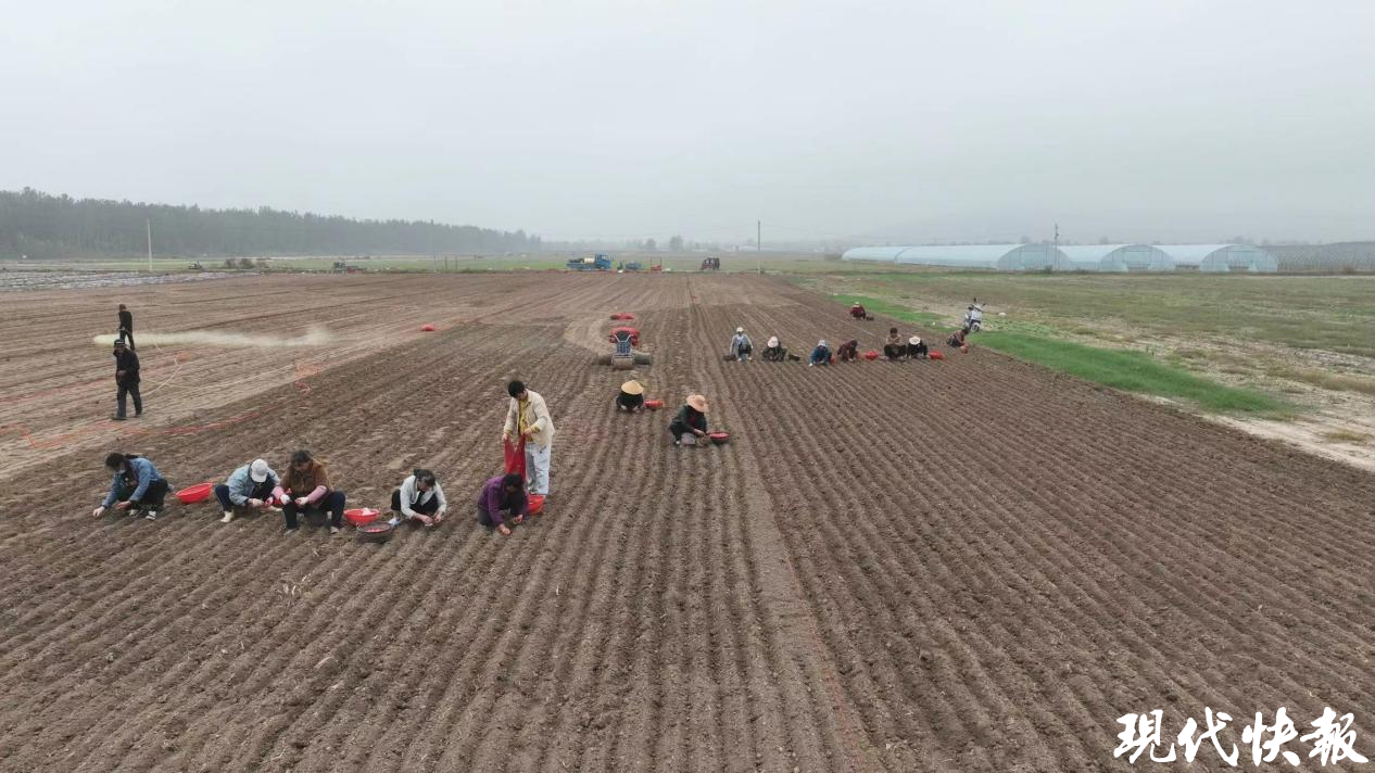 “有技术指导,还有保底收购价,相当于给我们上了‘双保险’。”徐铭峥最终决定拿出100亩地试种,“今年先用人工种,保证出苗率,等摸透了技术,明年再扩大规模。”在村“两委”的号召下,在种植大户的带动下,1000亩“将军红”试验田在骑河村迅速落地。