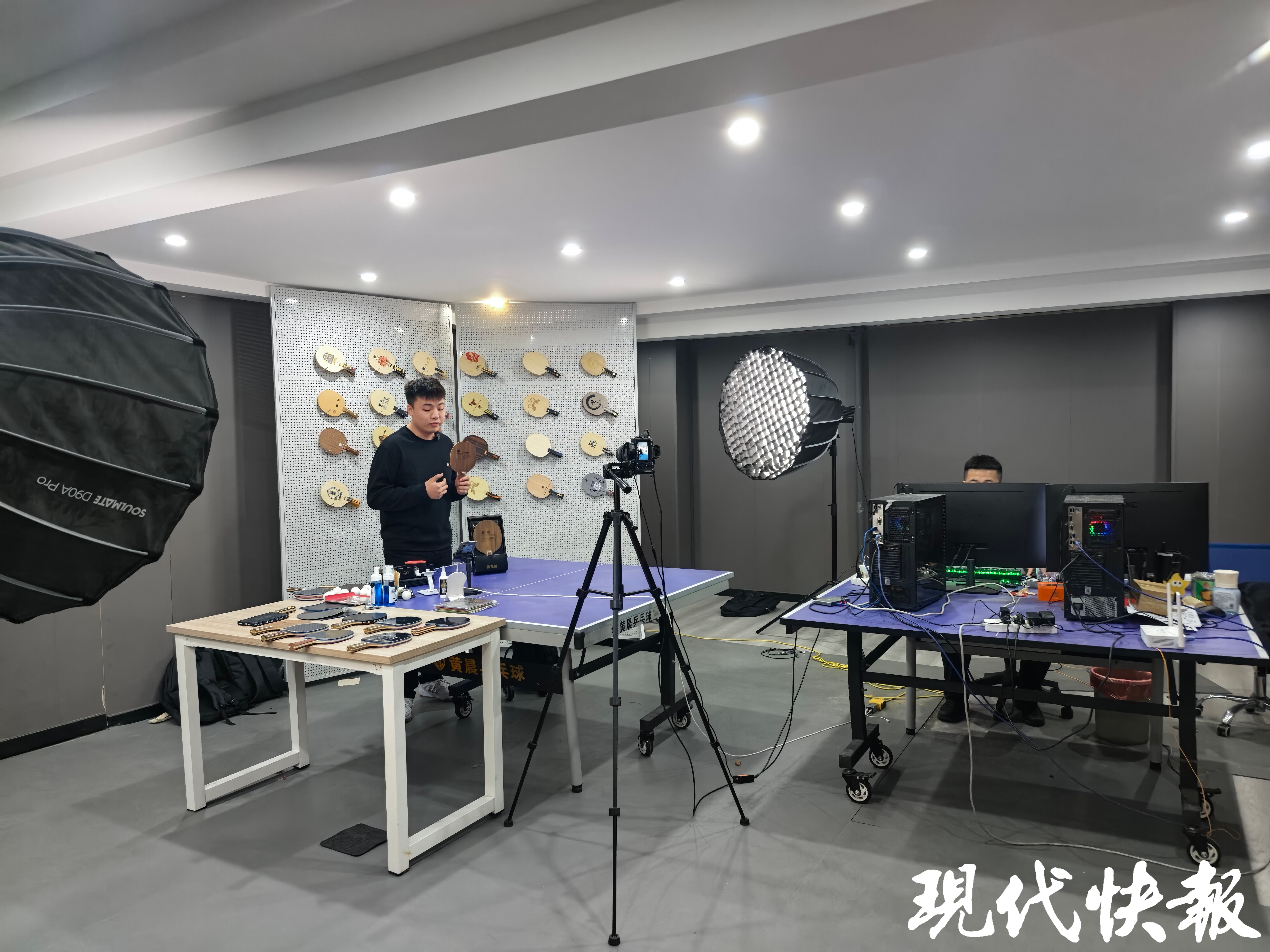 在位于邳州市城区的耀晨体育科技有限公司内,直播推介、短视频制作、物流对接等各环节工作人员加班加点,确保产品及时出单装车。