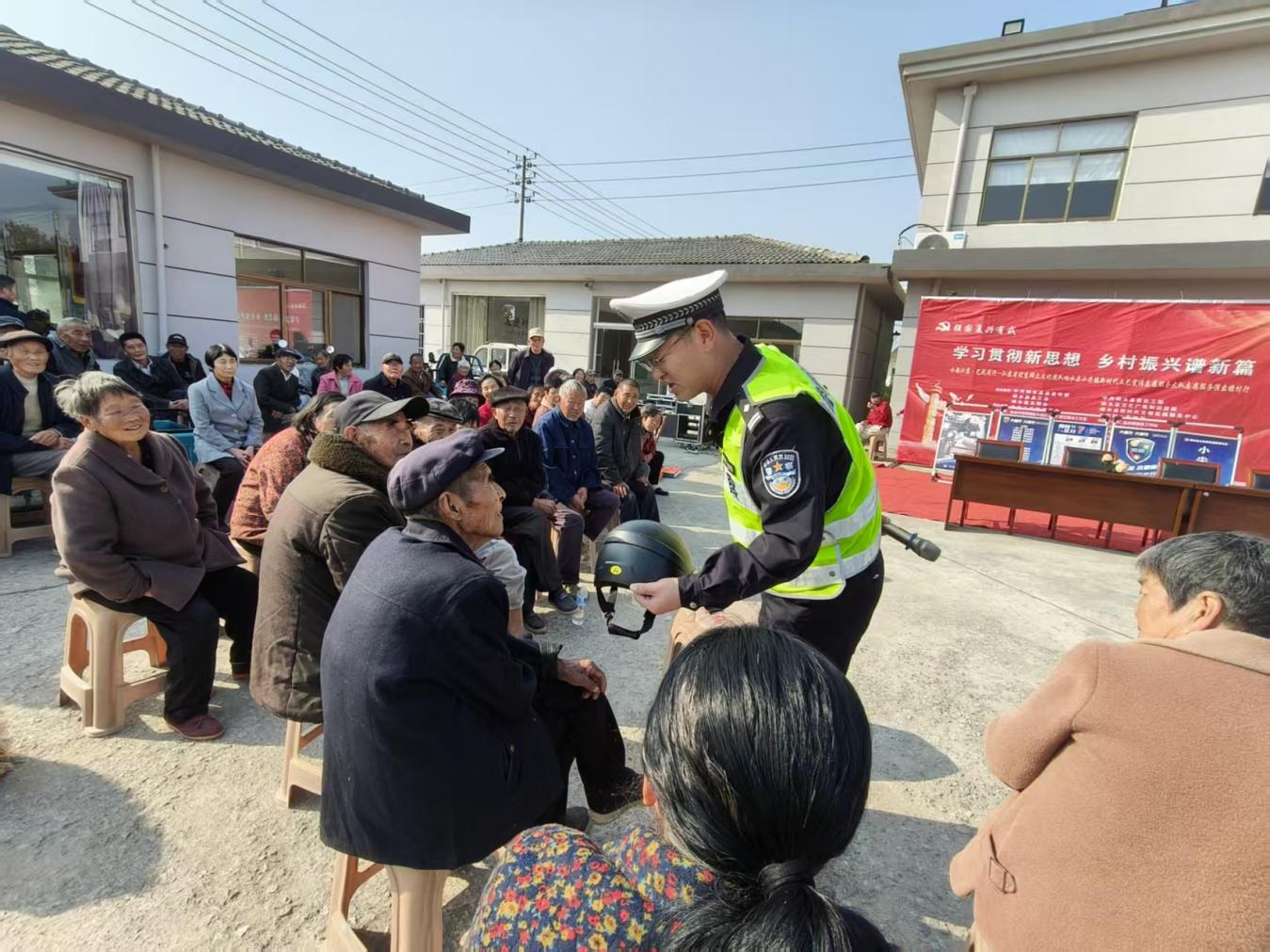 活动由响水县小尖镇新时代文艺宣传志愿服务大队和小尖交警中队“仁甫·护航”文明交通志愿服务队联合举办。演出开始前,小尖交警中队“仁甫·护航”文明交通志愿服务队负责人针对农村中老年群体,开展了“见缝插针”式的交通安全宣传活动,通过案例讲解、有奖问答等互动形式,普及交通法规。