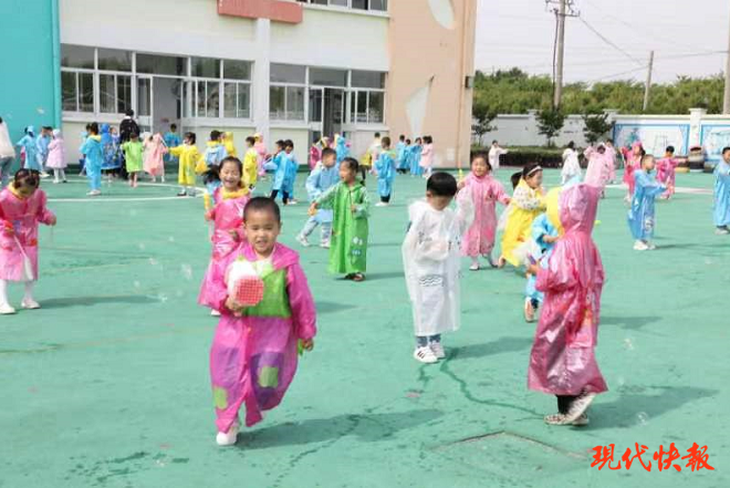 当天上午,射阳县海通镇实验幼儿园内气球、拱门、鲜花、红地毯、场景相框一应俱全,喜气洋洋。玩偶分列拱门和过道两旁迎接孩子入园。进了场的孩子们立即换上雨衣,戴上护目镜,挑选自己喜欢的水枪或是泡泡机,与小伙伴们一起玩起打水仗、玩泡泡游戏。“我今天全部胜利了,我非常开心。”射阳县海通镇实验幼儿园幼儿董其杭满脸兴奋。