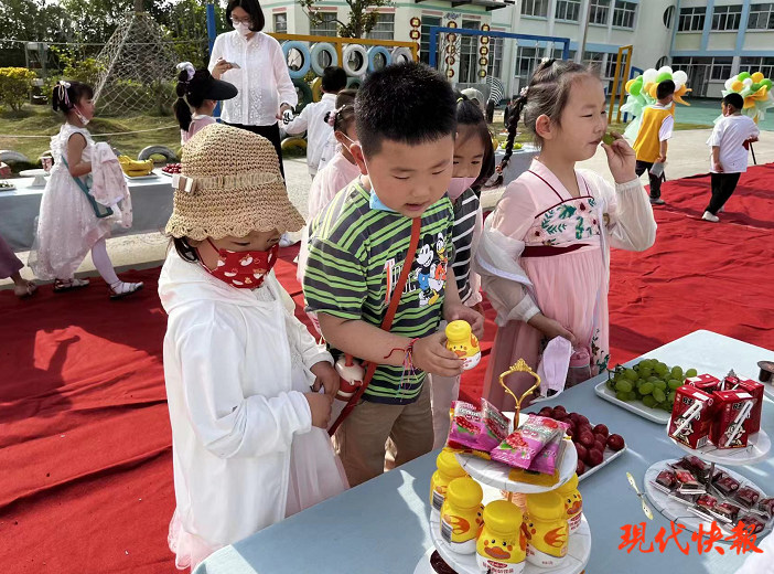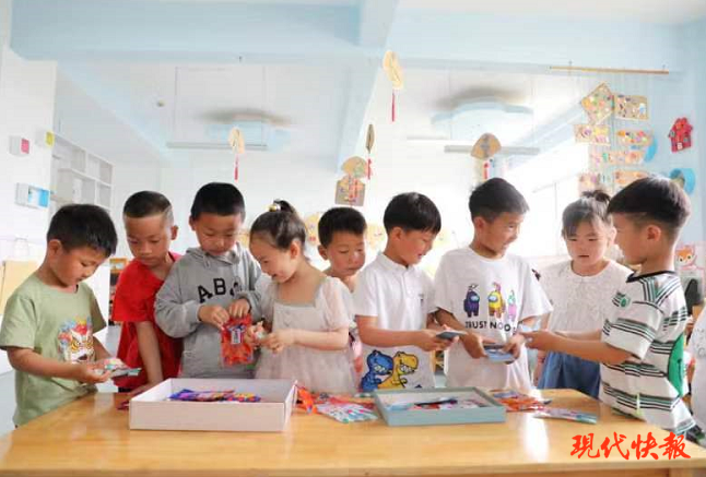 游戏结束,孩子们静静地享用自己喜欢的点心、水果,共赏动画过后,迎来了给他们带来无限惊喜的环节——拆趣味盲盒。“我得到了这么多礼物,我太高兴了。我好希望经常收到这样的礼物。”射阳县海通镇实验幼儿园幼儿马宁近语气里充满惊喜。