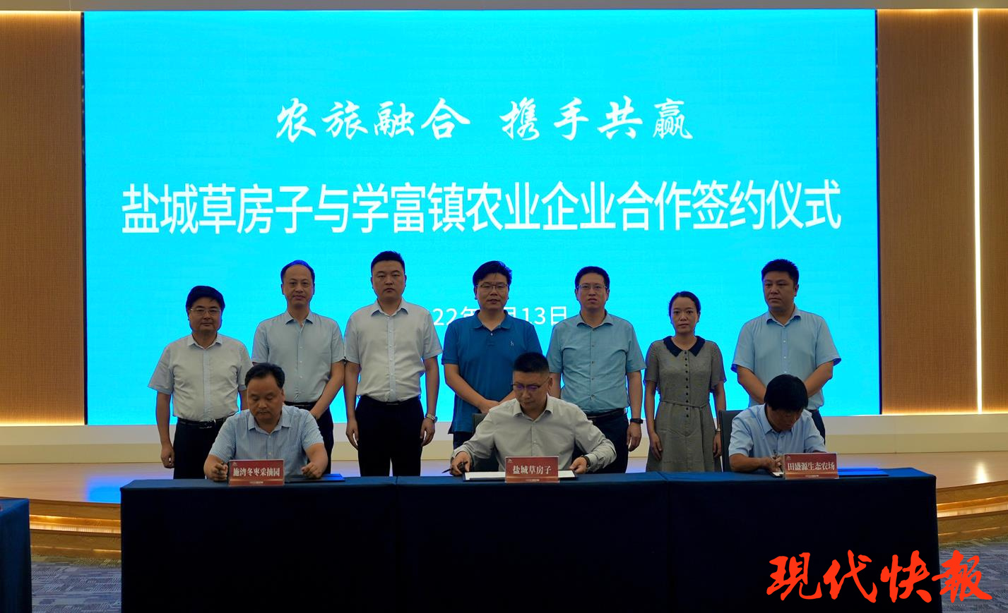 现代快报讯(通讯员 焦明艳)8月13日下午,盐城草房子农旅融合签约仪式在该景区举行。盐都区农业农村局、文旅局、学富镇和盐城市城镇化建设投资集团有限公司领导出席。施湾冬枣采摘园、田盛园生态农场、盐城草房子等企业代表受邀出席。