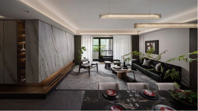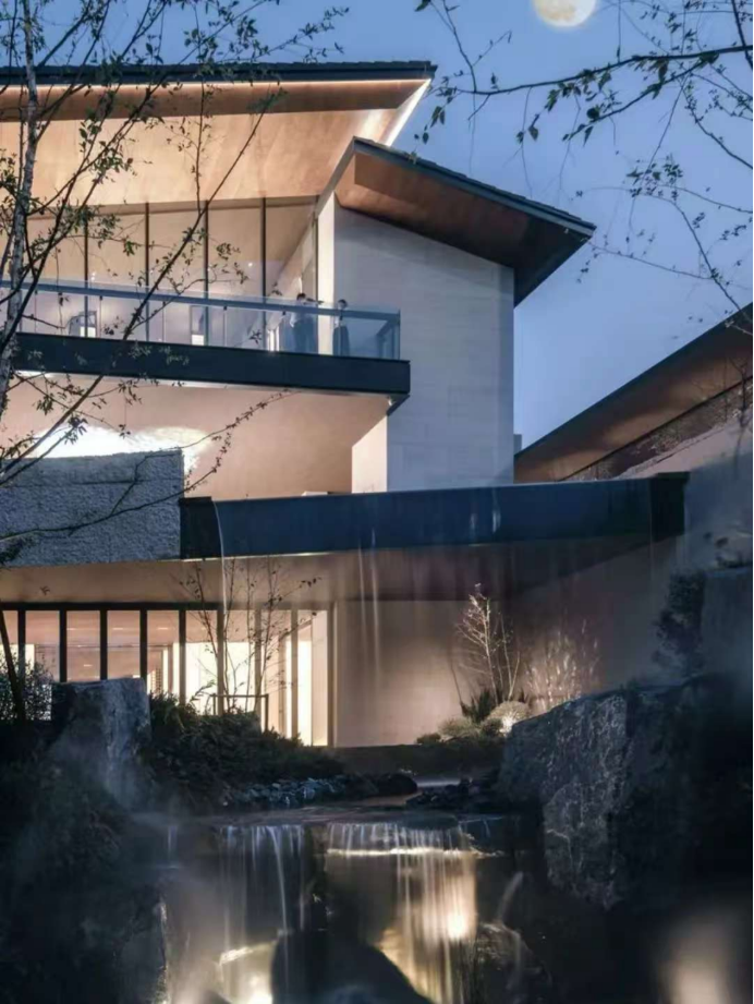 项目立面秉持历久弥新与长期审美的先进性,采用国际东方美学,融合石材的硬朗、金属的质感与玻璃的通透优雅,尽显高级感的国际山居美学。